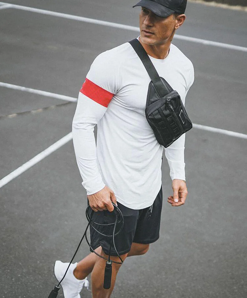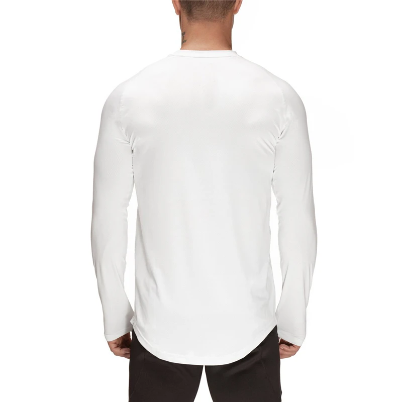 Брендовая сетчатая Мужская футболка для фитнеса с длинным рукавом, одноцветная удлиненная длинная облегающая футболка, спортивная одежда, футболка для бодибилдинга, Мужская