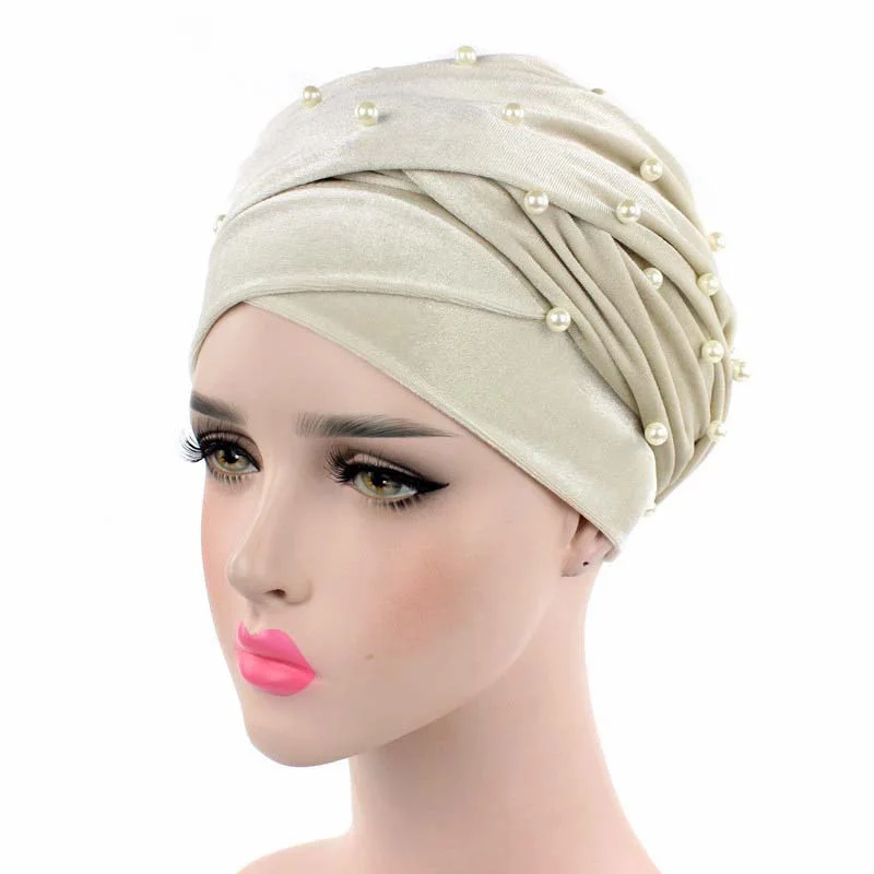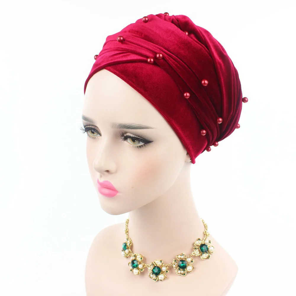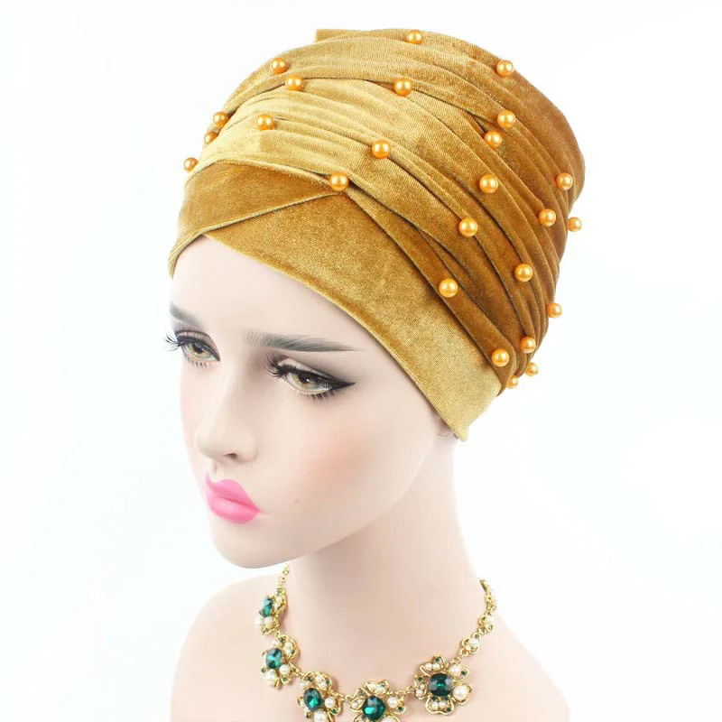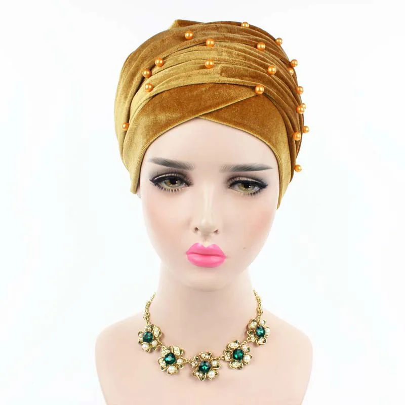 Бархатный хиджаб с жемчугом, тюрбан, мусульманская шапка с длинным хвостом, шапка, мусульманская шапочка с шарфом, женские африканские шарфы, 2019