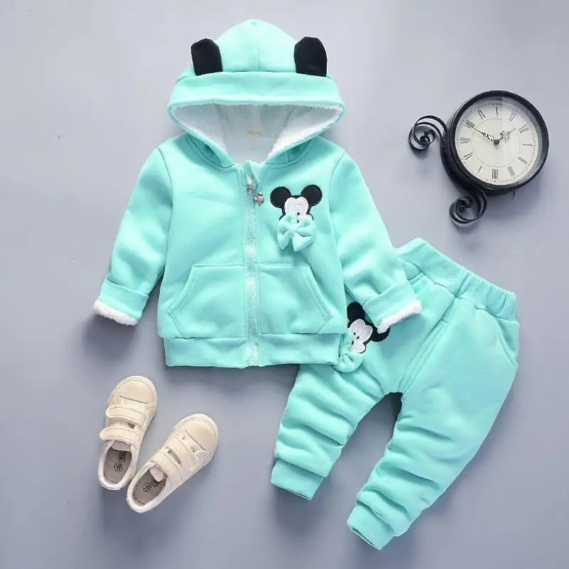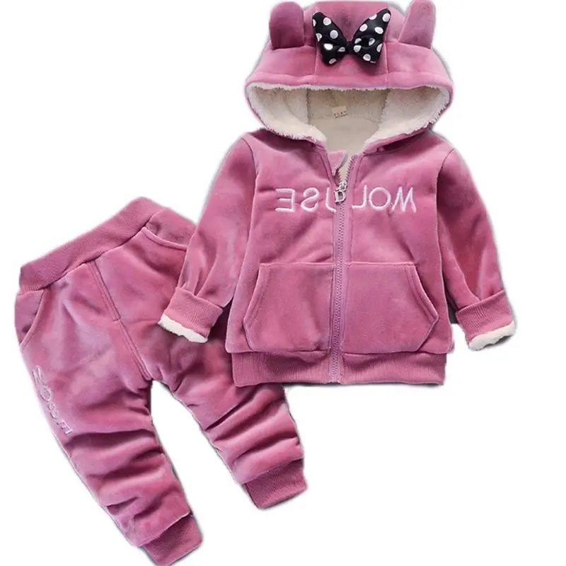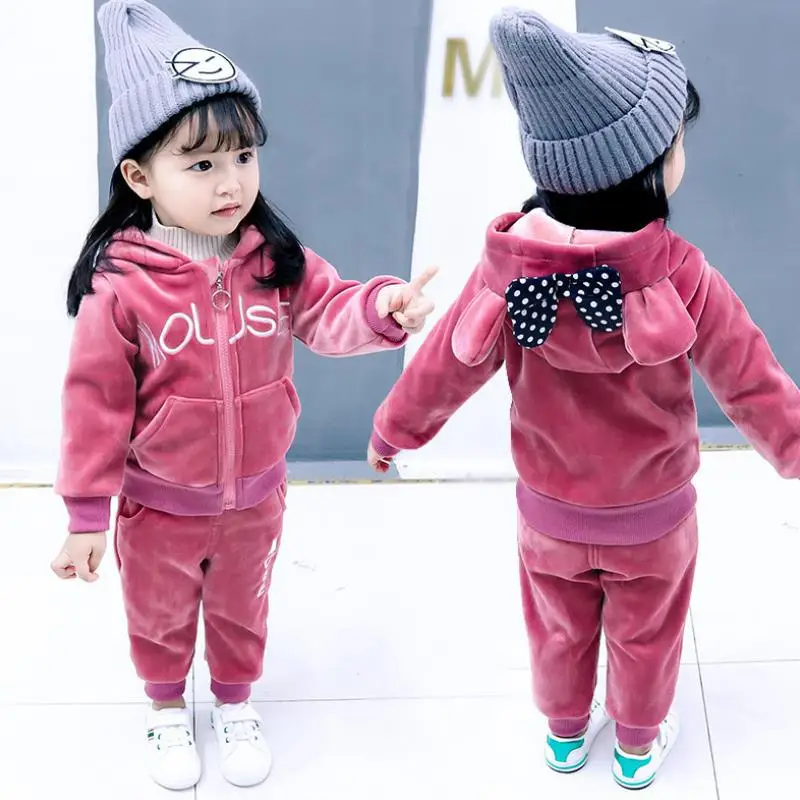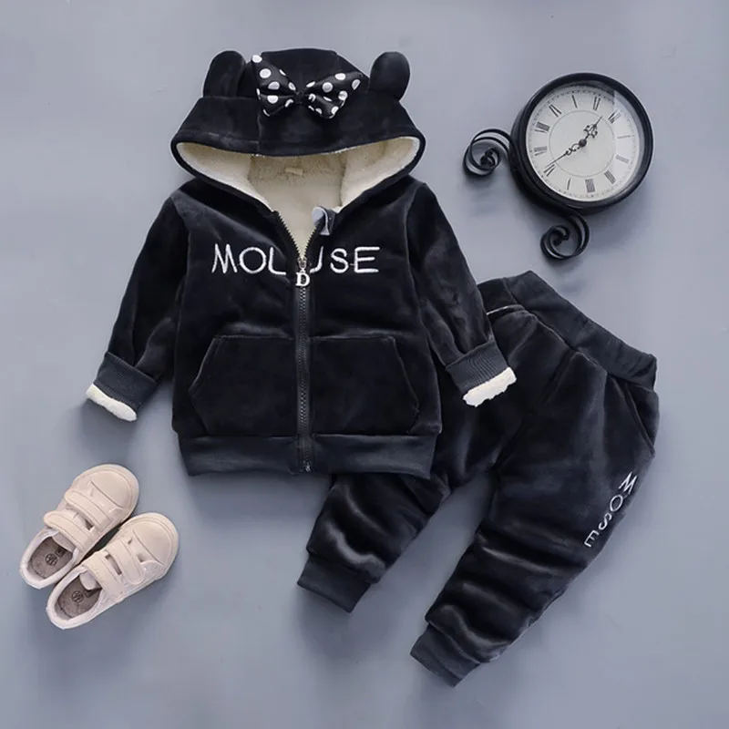 Детский спортивный костюм из 2 предметов, зимняя одежда, спортивный костюм с капюшоном для маленьких мальчиков и девочек, повседневные плотные костюмы для малышей, 2019