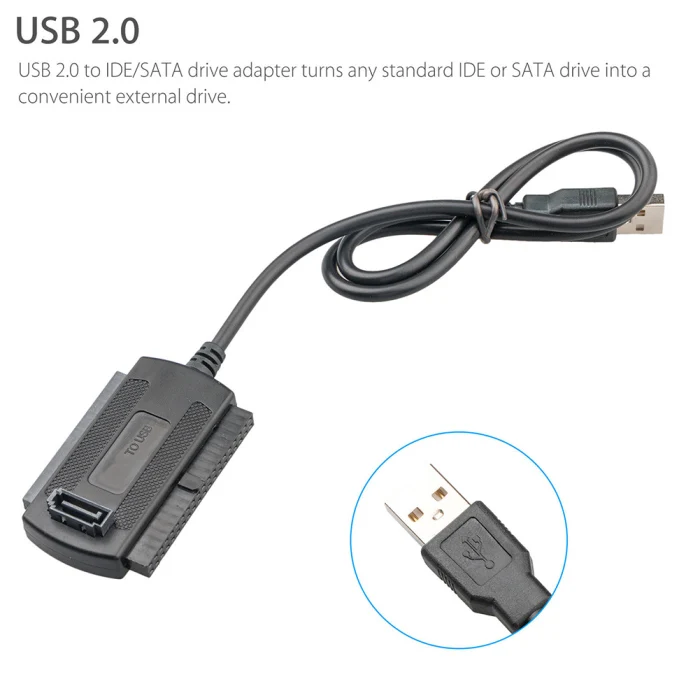 2. Адаптер USB 2,0 для IDE/SATA превращает любой стандартный диск IDE или SATA в удобный внешний диск. Простая передача файлов с компьютера или ноутбука, резервное копирование файлов или хранение больших файлов на жестких дисках.
