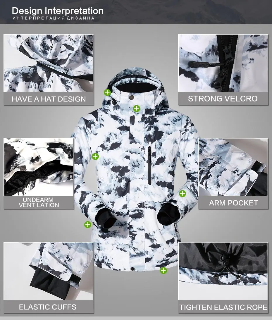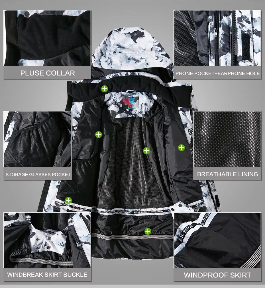 Лыжный костюм мужской зимний, новинка 2019, ветрозащитный водонепроницаемый термальный зимний пиджак и брюки, одежда, Брендовые костюмы для катания на лыжах и сноуборде