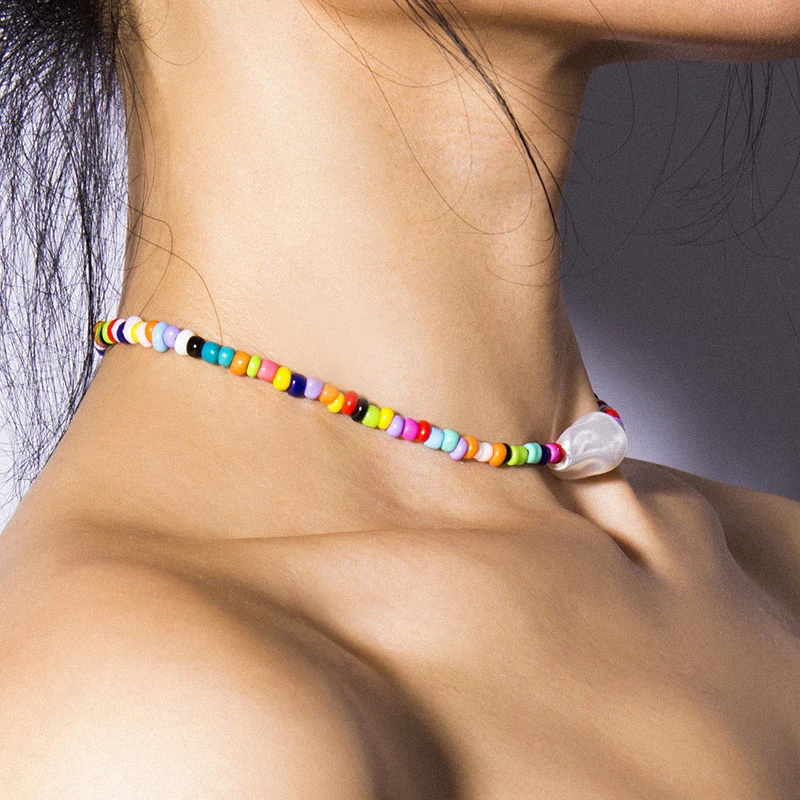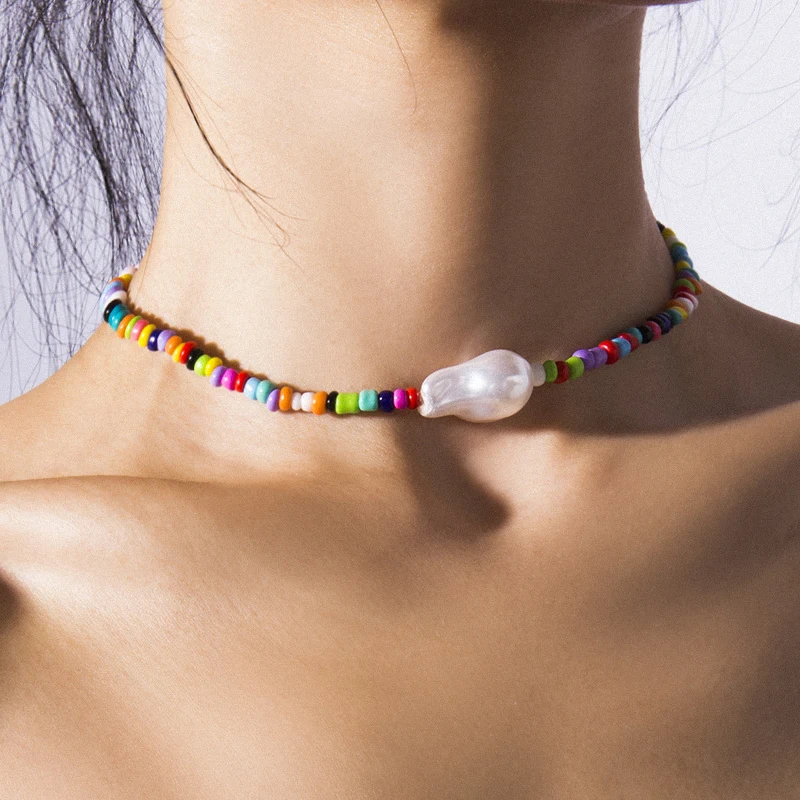 Цепочка с маленькими бусинами карамельного цвета в богемном стиле, короткие ожерелья для женщин, подвески в этническом стиле с имитацией жемчуга, ожерелья-Чокеры до ключиц