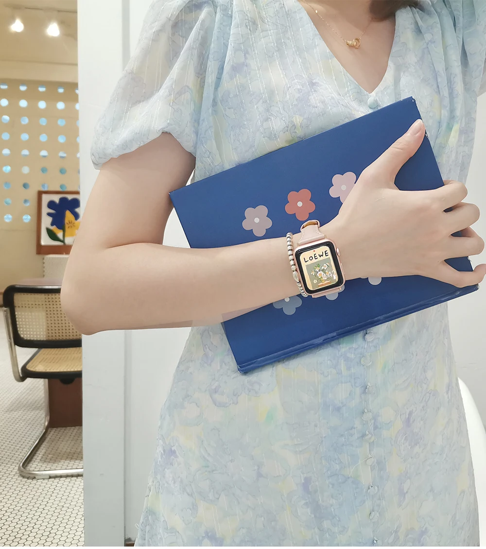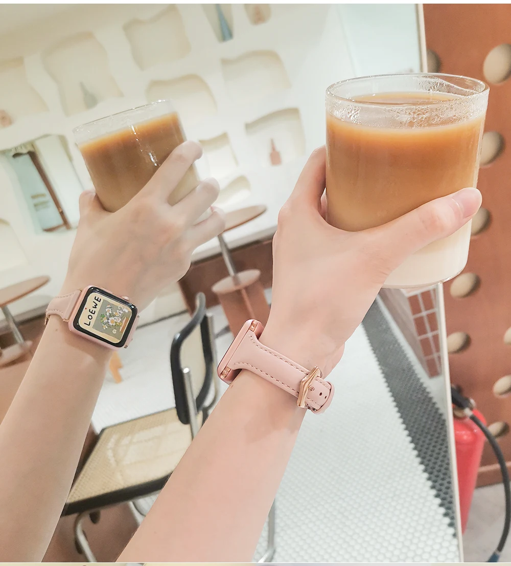 Ремешок из натуральной кожи для Apple Watch 42 мм 38 мм 44 мм 40 мм, женский браслет для iWatch series7 6 Se 5 4 3 2 1