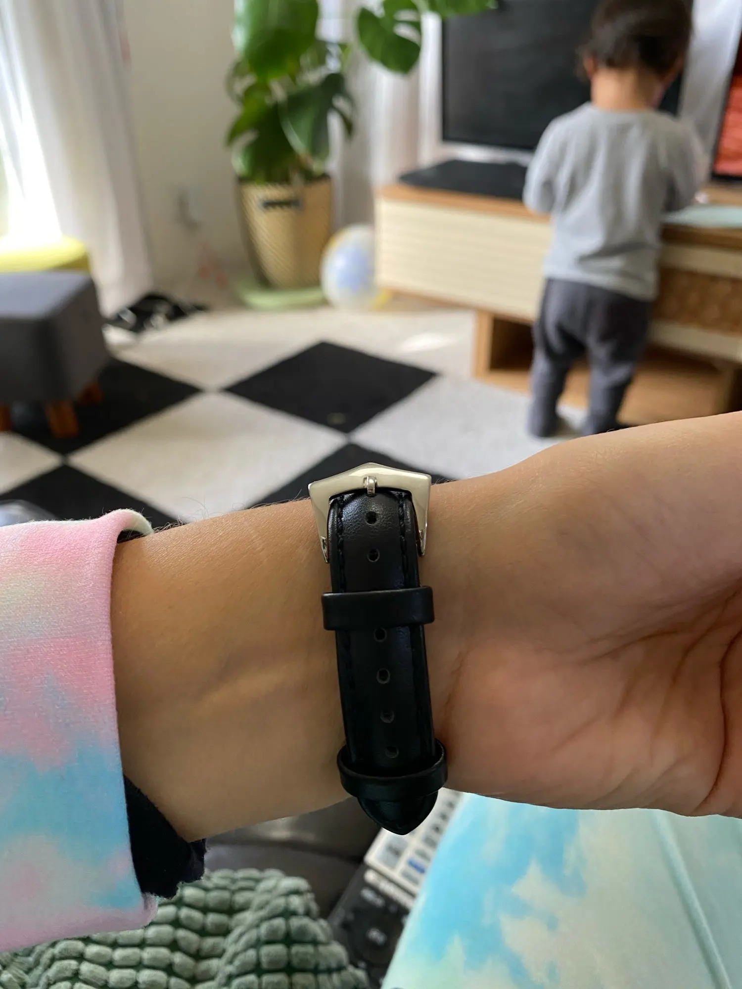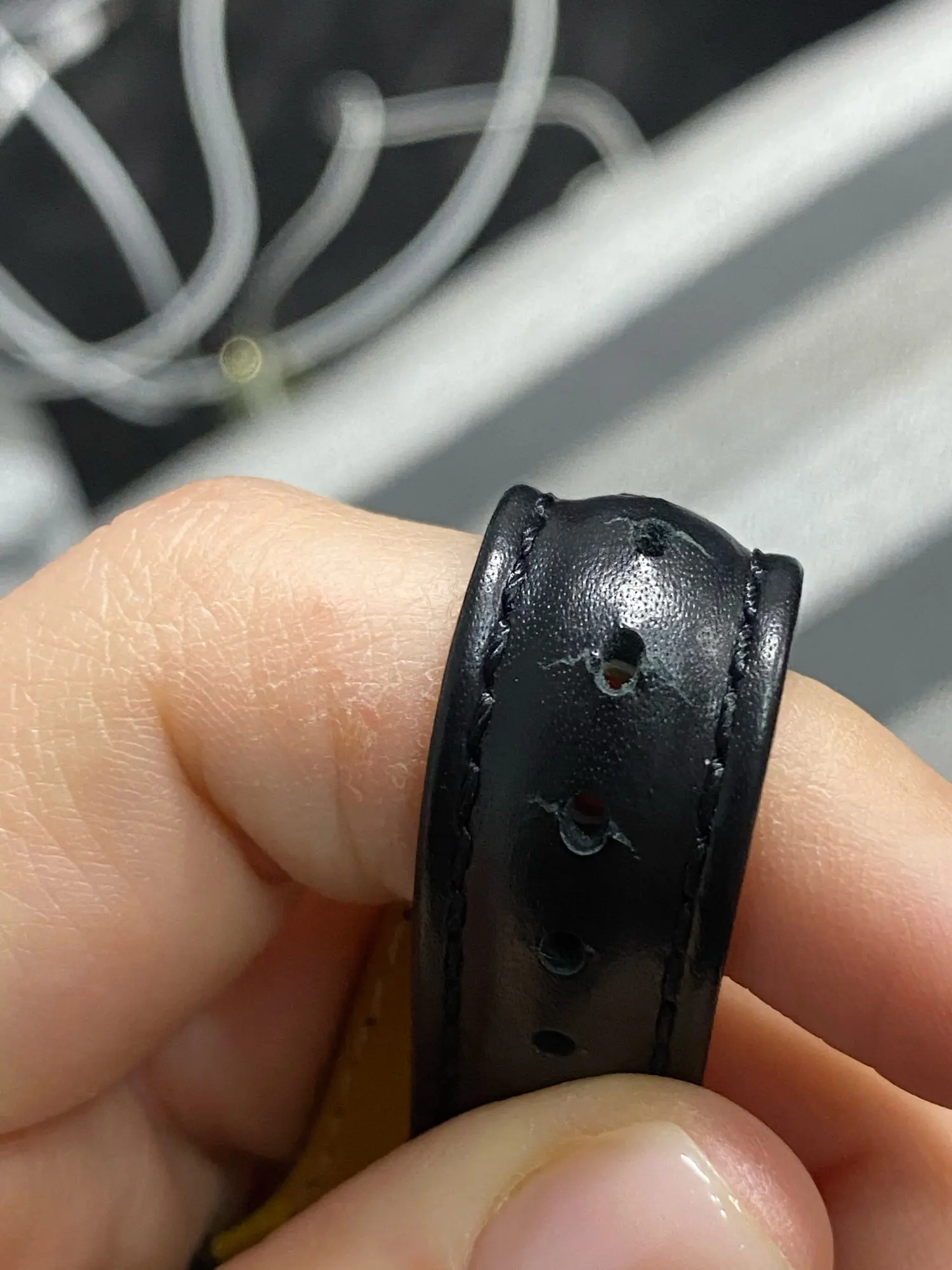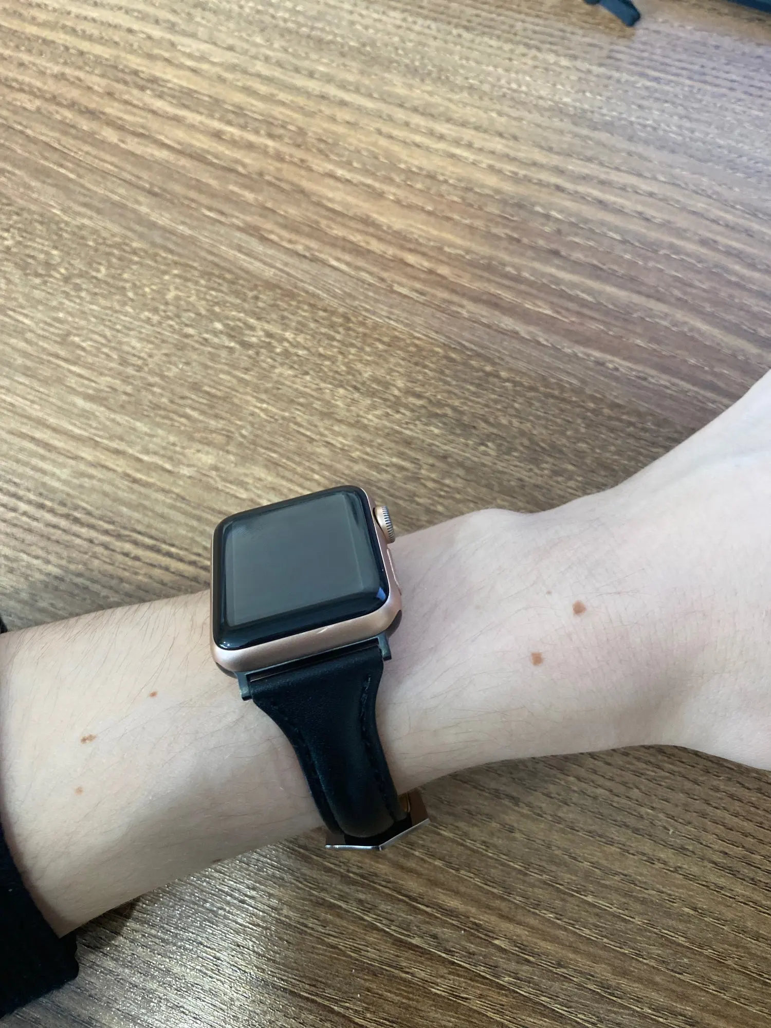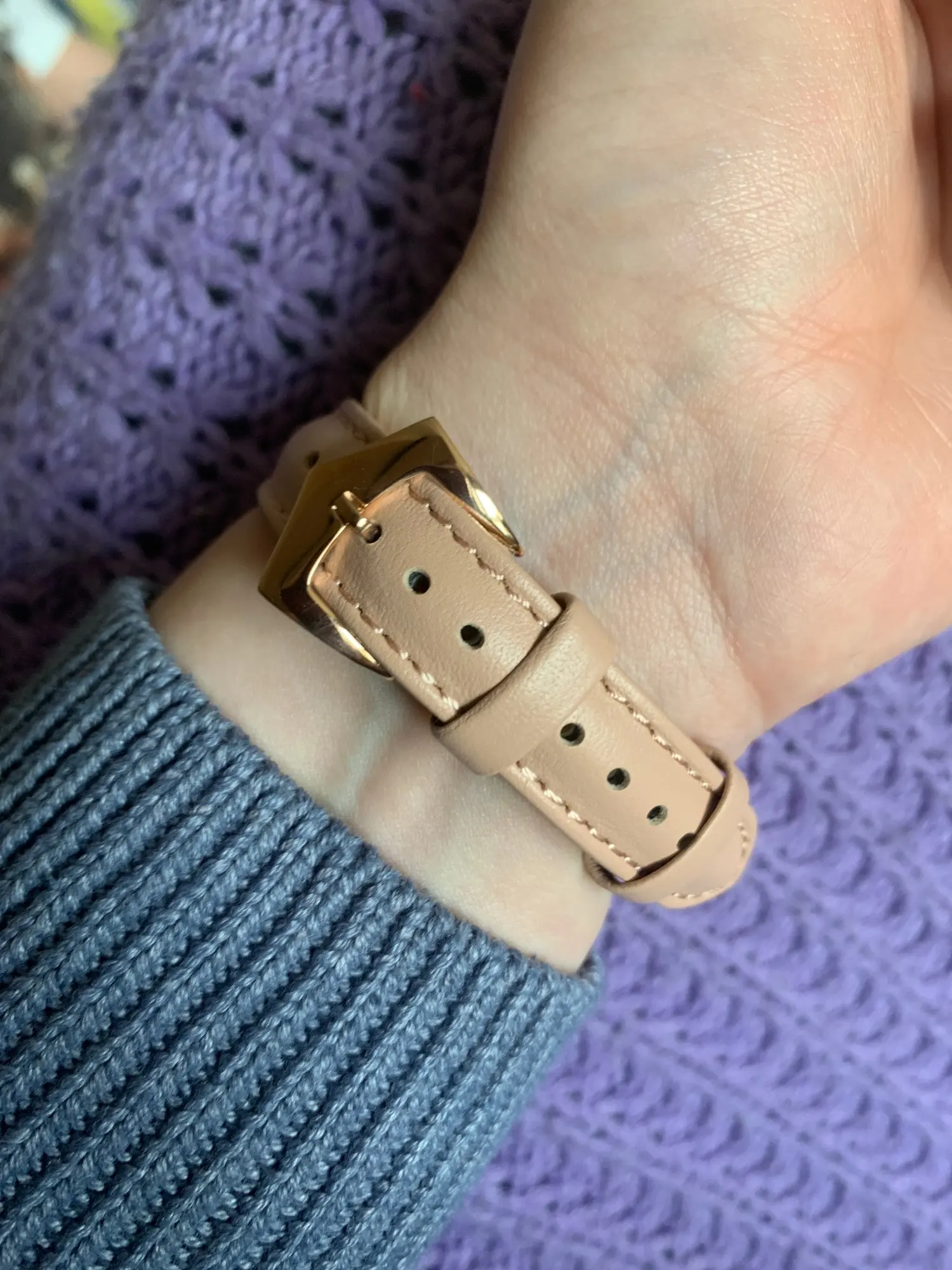 Ремешок пахнет кожей) жёсткий, перелавливает руку ( на фото видно) если расслабить то часы не будут прилагать к руке. Есть не большой брак, но они прошиты по этому не открываю спор. В общем довольна