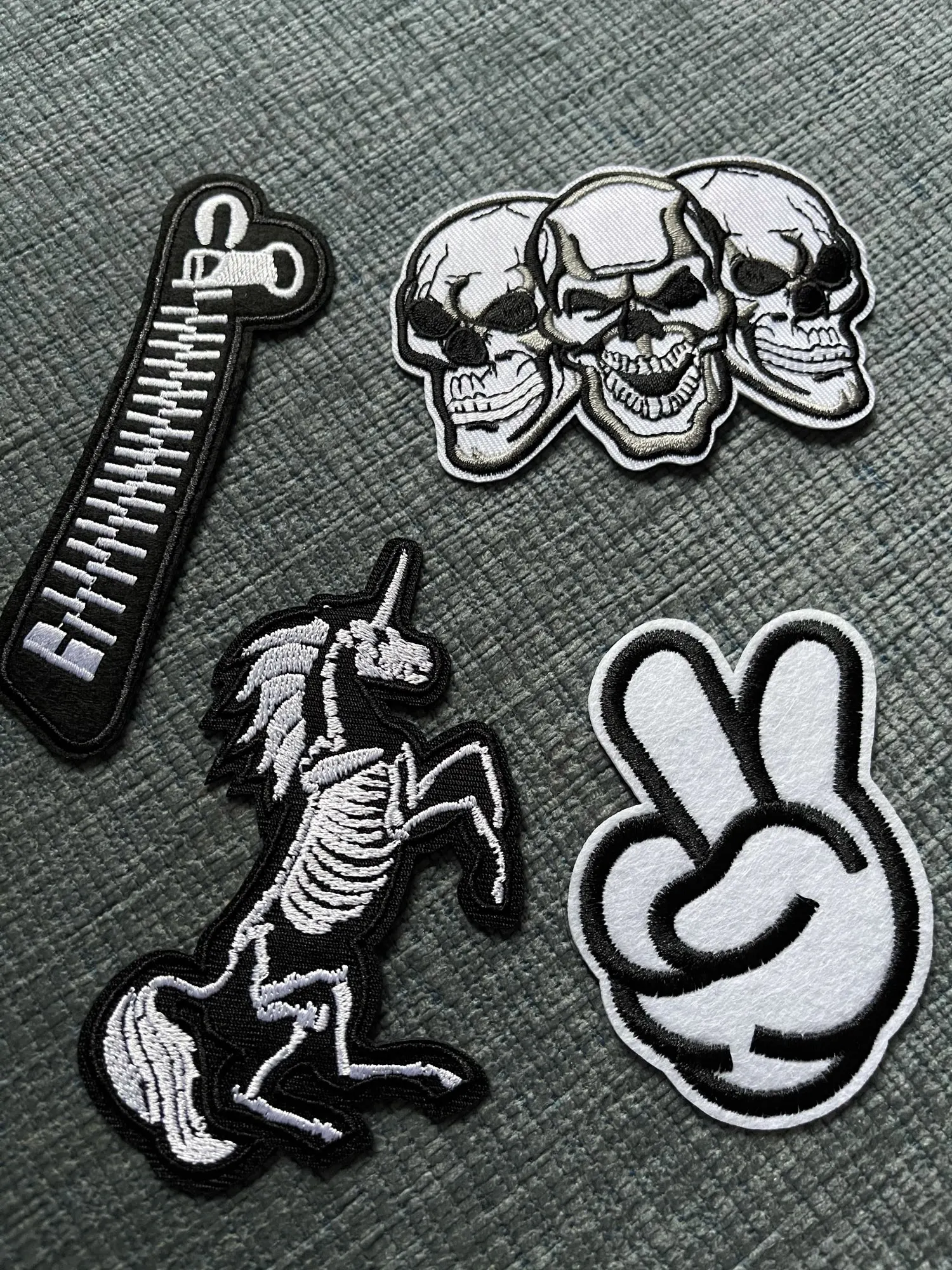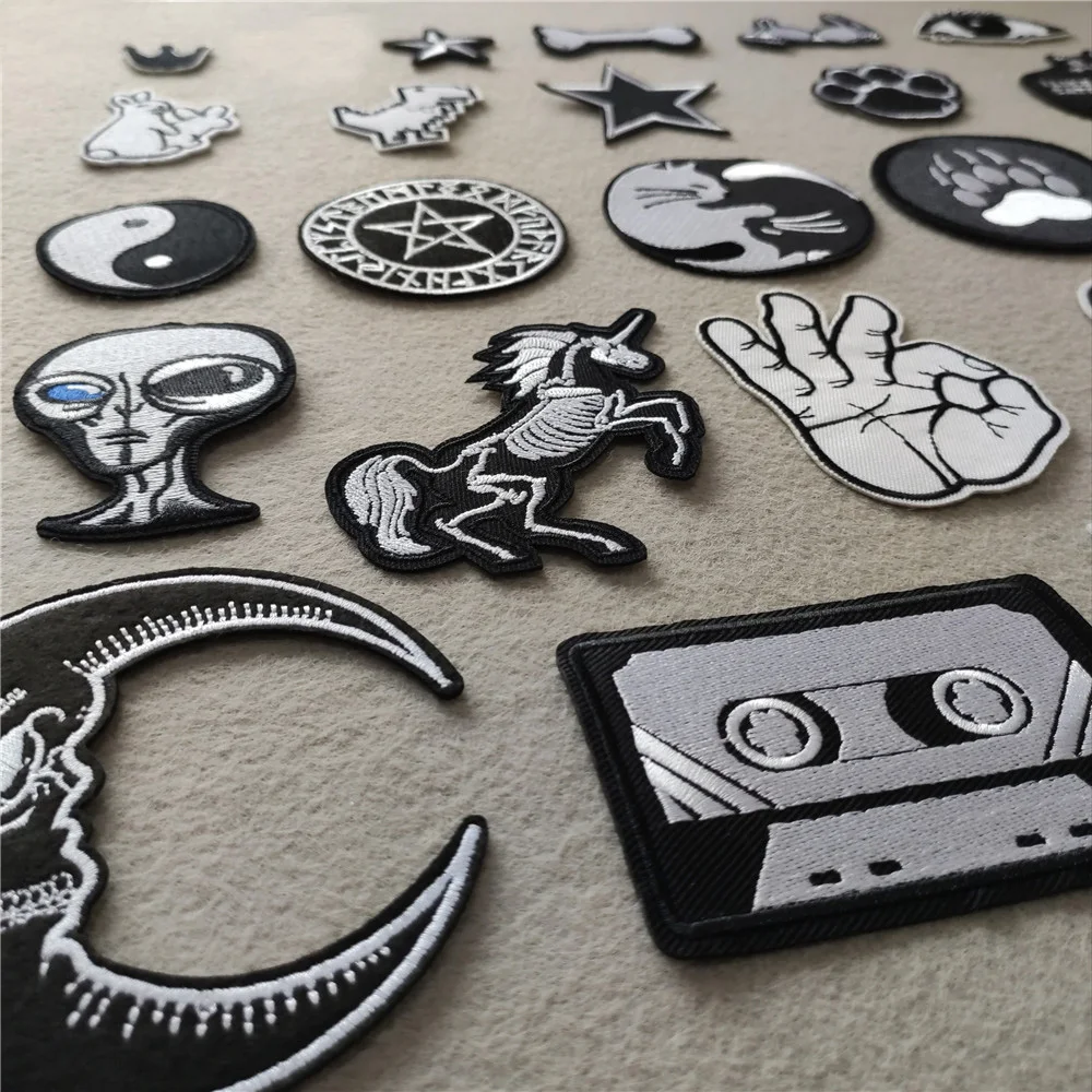 Нашивки для футболки, черно-белые, с вышивкой, в полоску, наклейки для одежды значков, 46 стилей на выбор