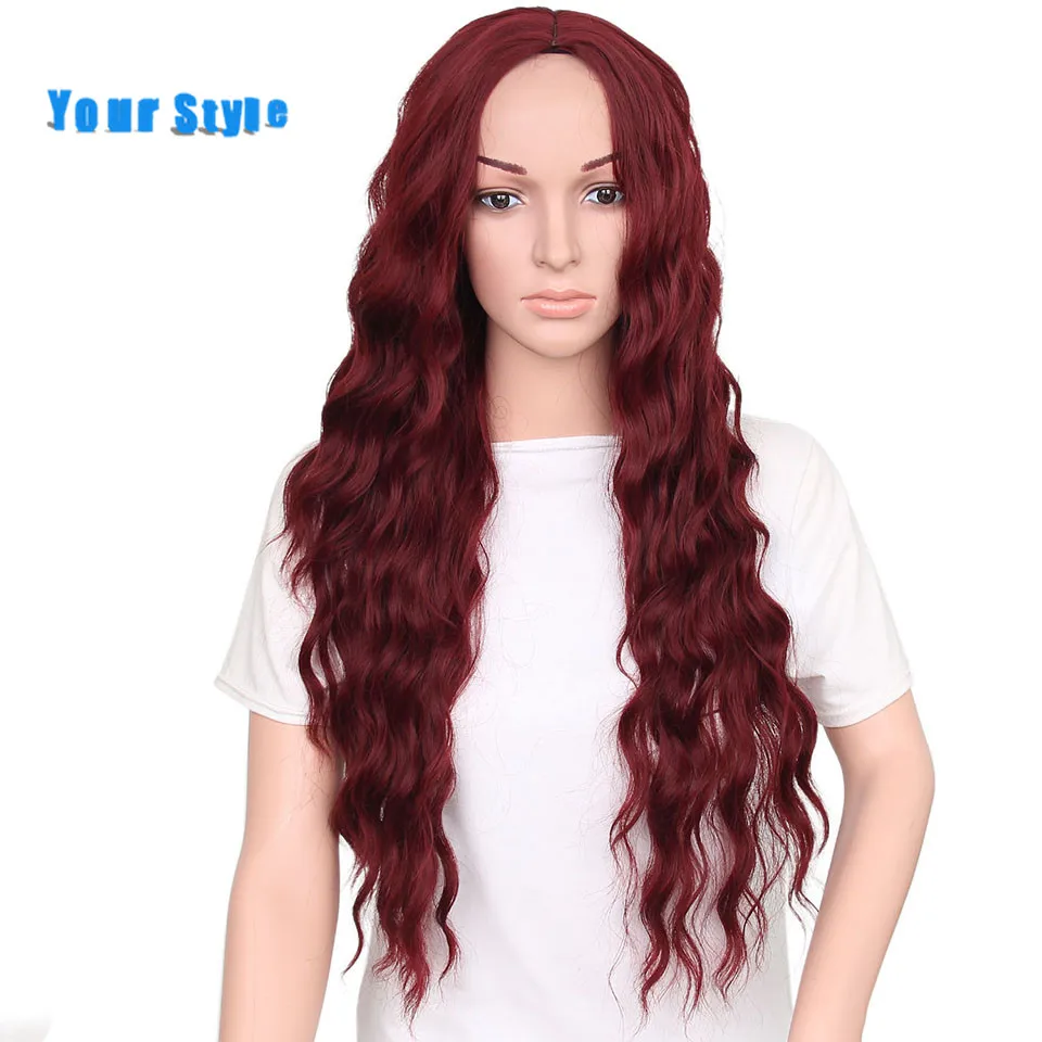 Your Style 4 Colors Long Deep Loose Wig For Women Cosplay Wigs High Temperature Fiber Ombre Brown Black Red Burgundy Color