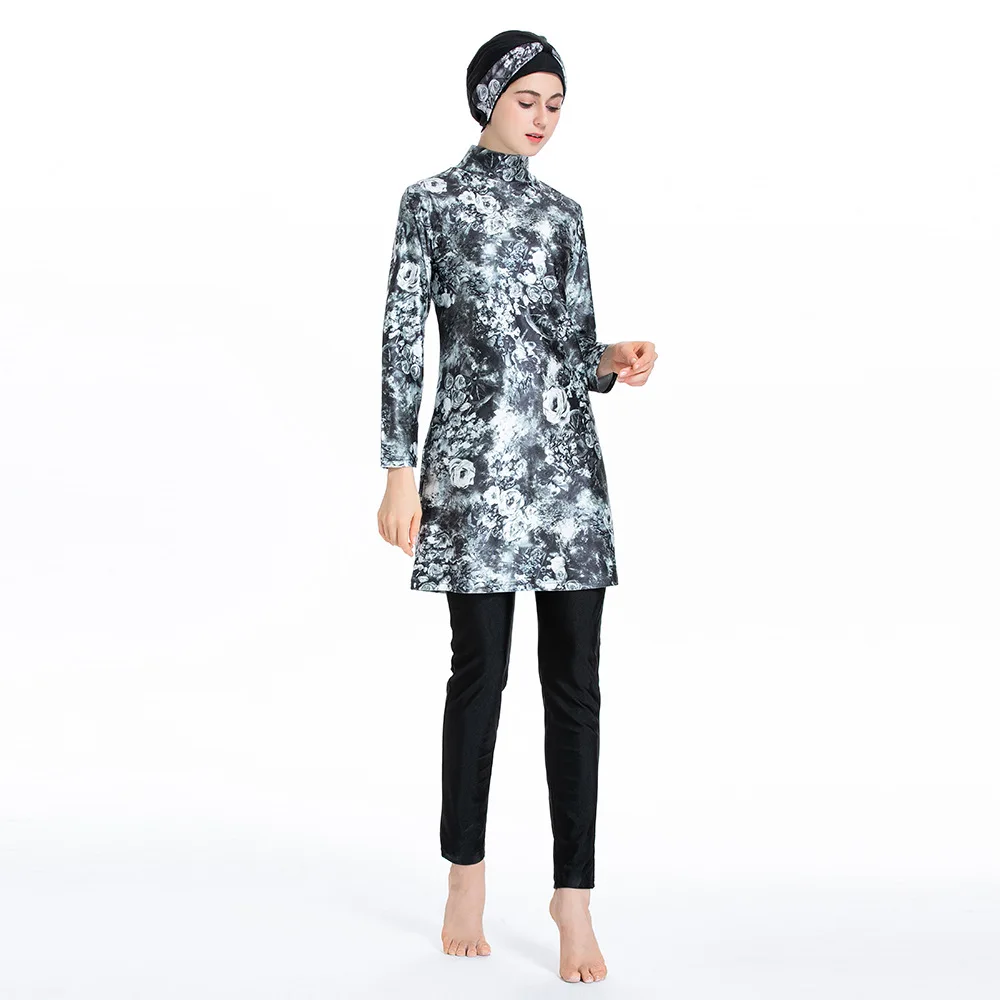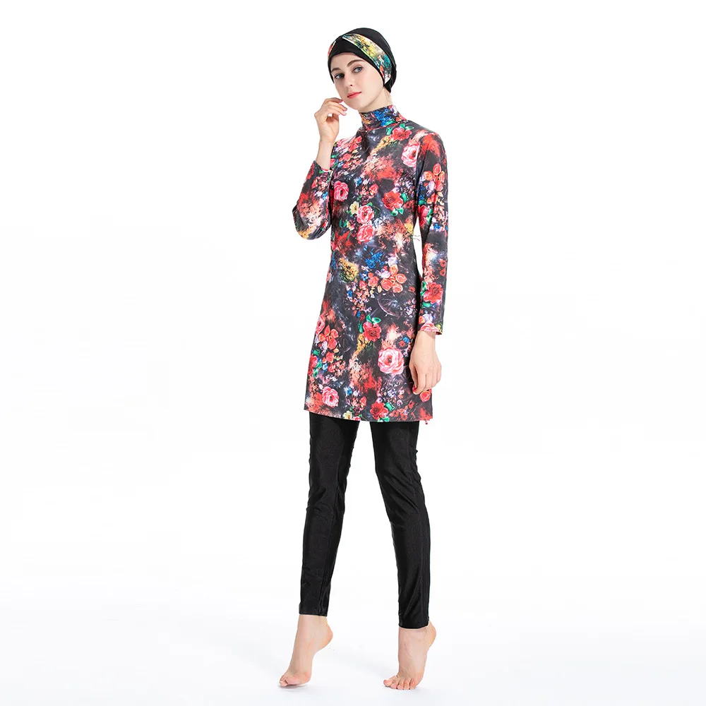 Новый Мусульманин Burkini Печатный Высокая Эластичность Купальник Пляжный Костюм для женщин Исламский Купальный Костюм Скромные Купальники Плавание Хиджаб