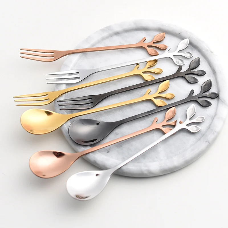 Оригинальная металлическая кофейная ложка в виде листьев, маленькая Роскошная Милая ложка для перемешивания кофе, из нержавеющей стали, для приправ, десертная вилка, чайная ложка, 1 шт.