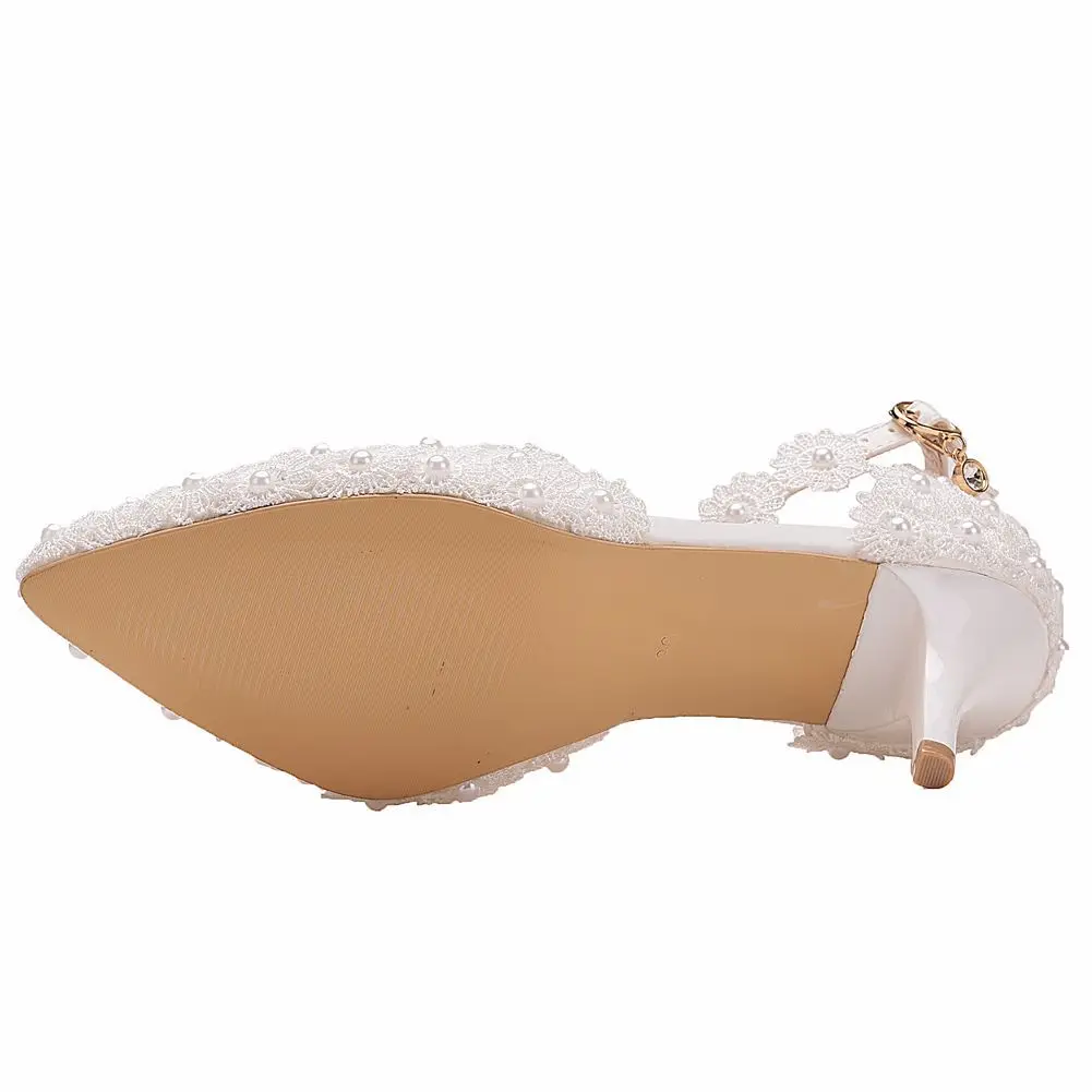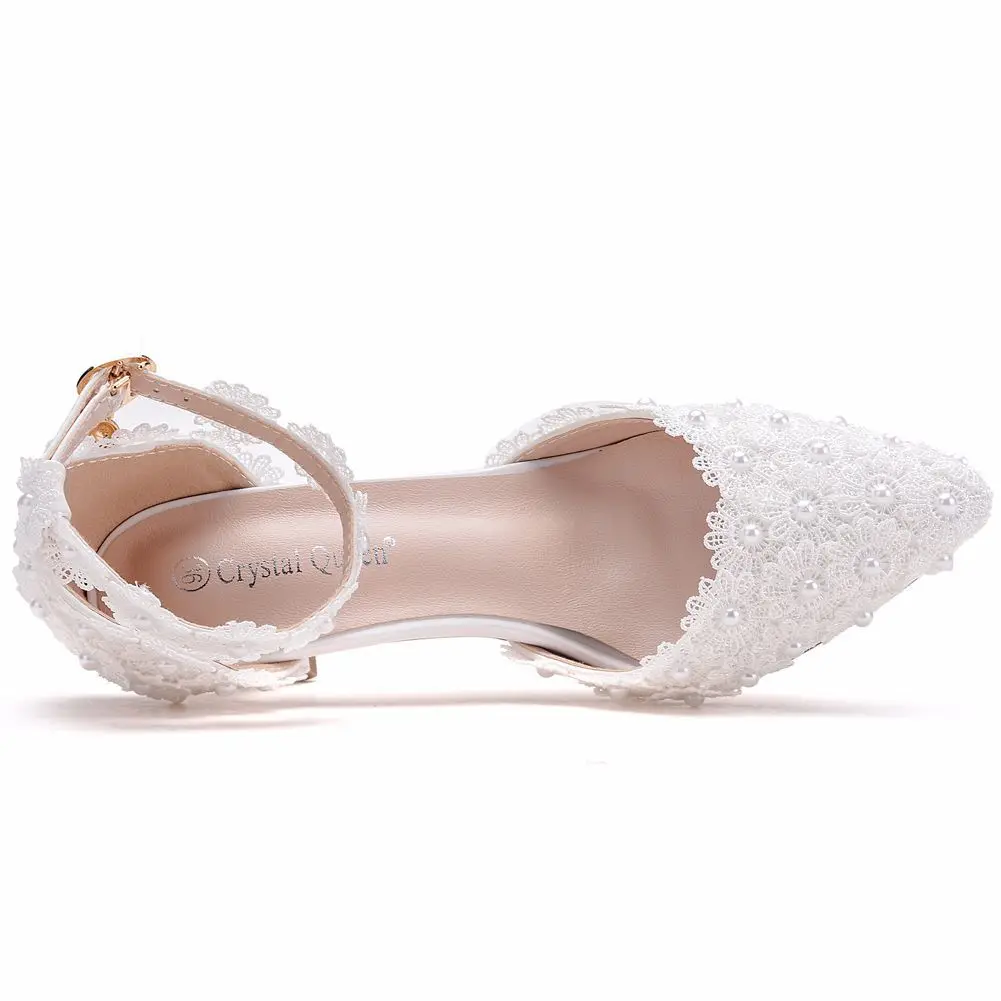 Новинка весна-лето 2019, женская тонкая белая кружевная Свадебная обувь 7 см, модные туфли на высоком каблуке