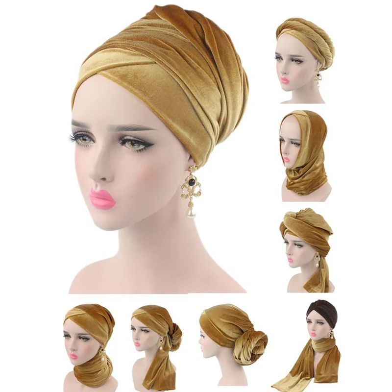 2022 г., простой бархатный хиджаб, тюрбан, шапка, мусульманский головной платок с длинным швом, шапка, исламский аксессуар, женские африканские шарфы