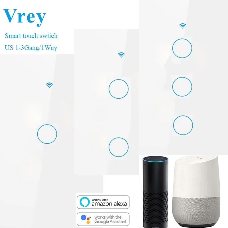 Умный сенсорный выключатель Vrey US ST, настенный выключатель с дистанционным управлением через приложение, работает с Alexa Google Home