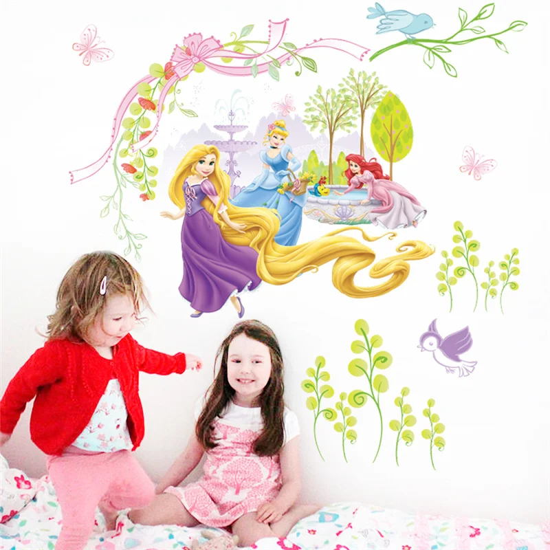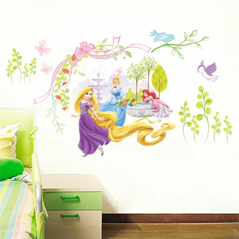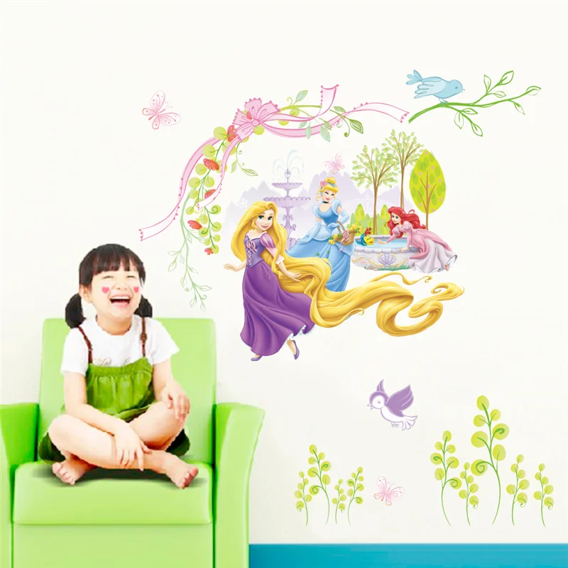 Мультфильм Рапунцель Ариэль Золушка Принцесса наклейки на стену для девочек комнаты украшение для дома ПВХ постер детские настенные художественные наклейки