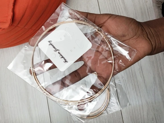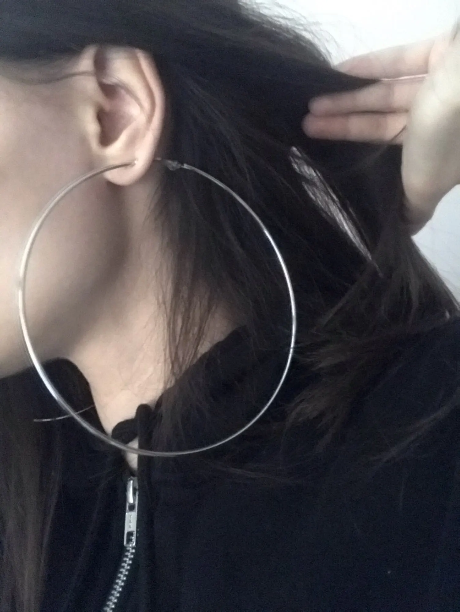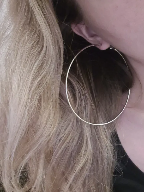 спасибо, быстро и как на фото. раньше носила меньшего размера, было обычно как-то.. этот размер круто смотрится, стильно.. еще бы из серебра такие найти, но надеюсь и эти долго послужат и не потемнеют.