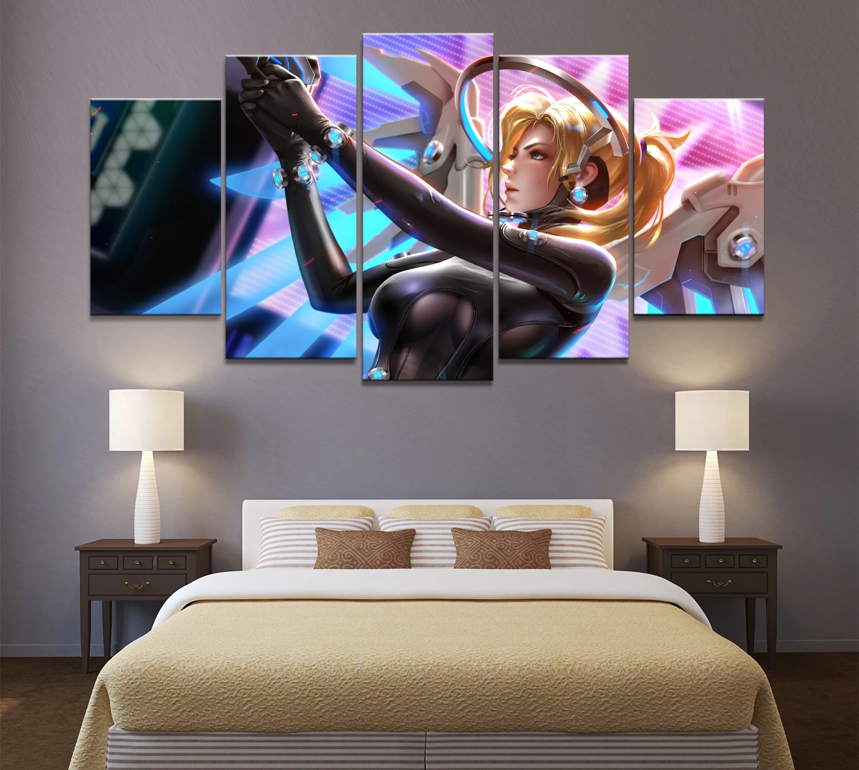 Домашний декор плакат HD фотографии печать на холсте 5 шт. модульная плотная одежда милосердие Overwatch игра гостиная декоративная живопись
