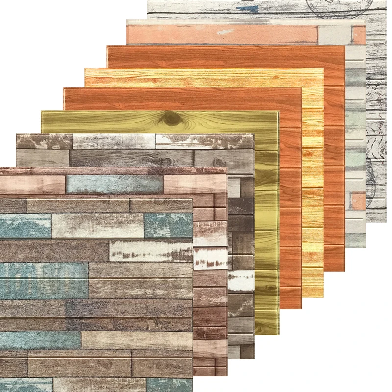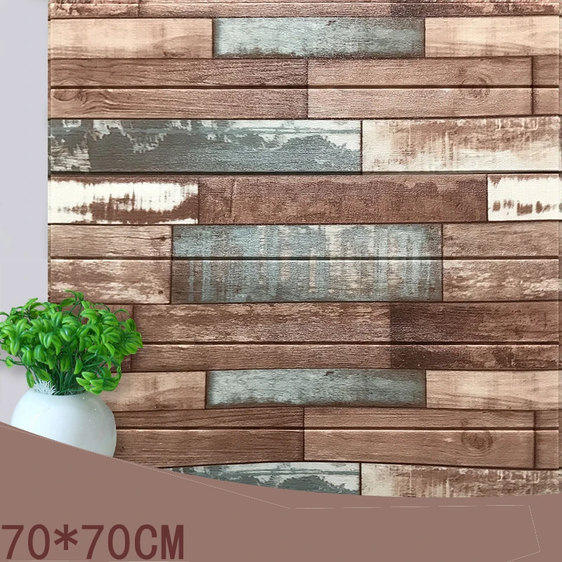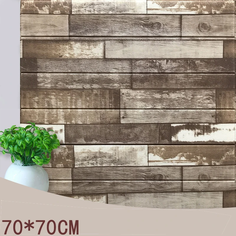 70*70 Средиземноморский Винтаж 3D деревянные полосы настенные наклейки DIY PE пена Самоклеящиеся гостиная спальня домашний декор обои