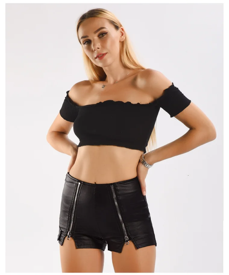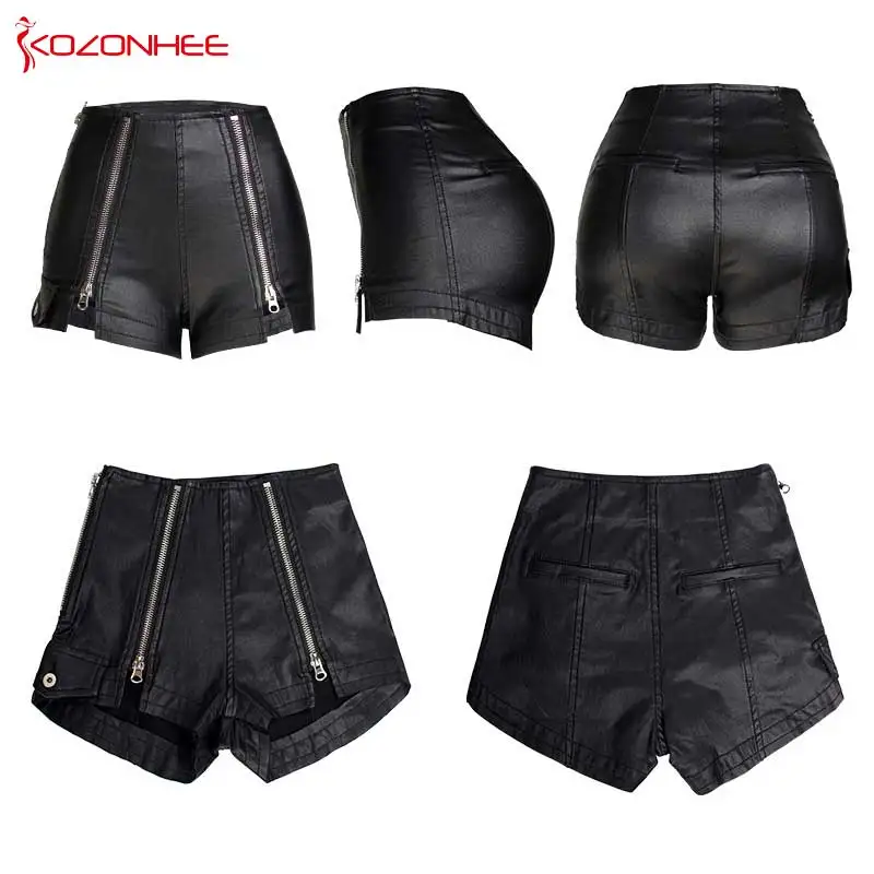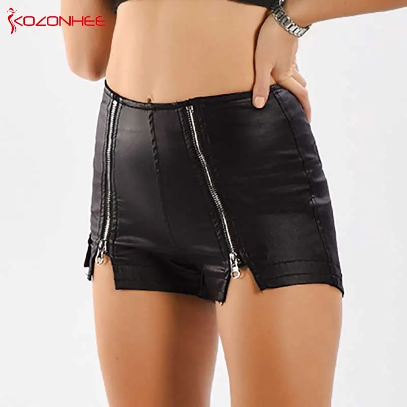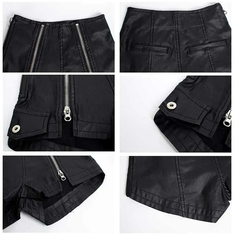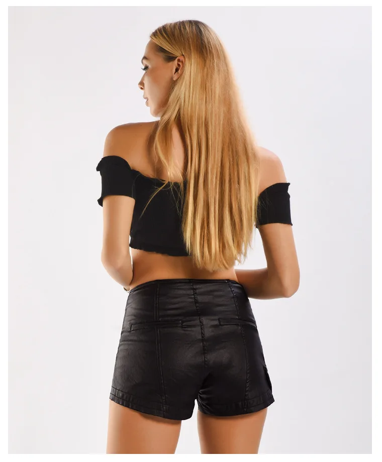 Модные черные эластичные бархатные шорты из искусственной кожи с высокой талией, эластичные женские летние эластичные шорты на металлической молнии #09