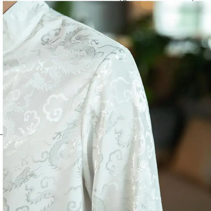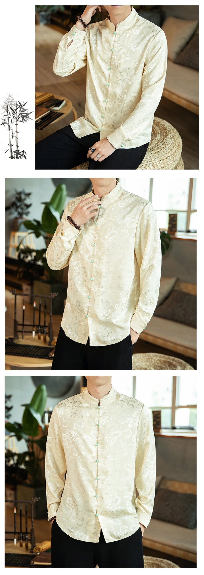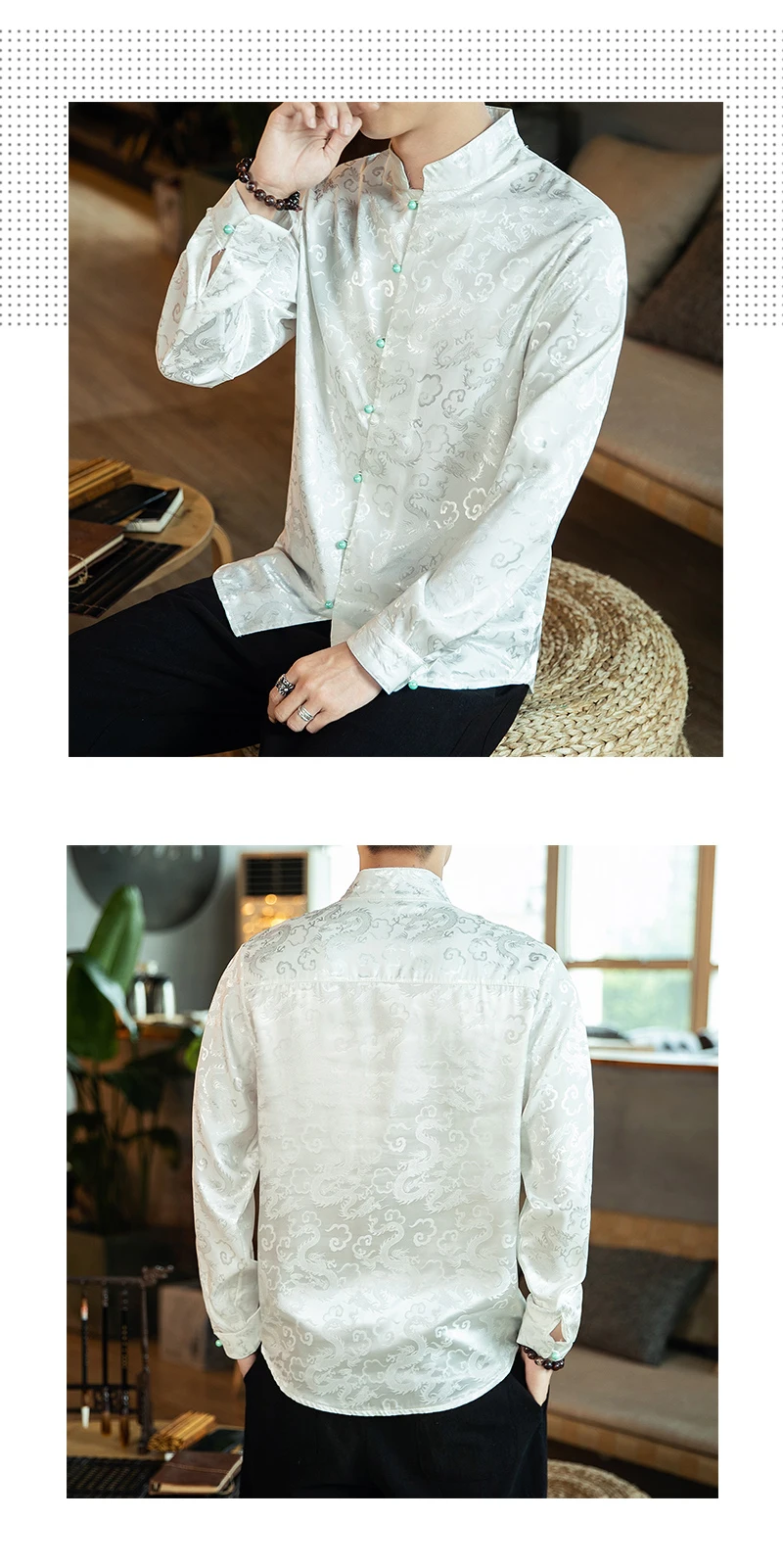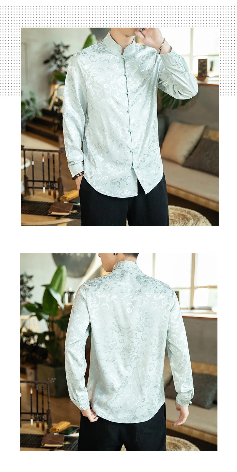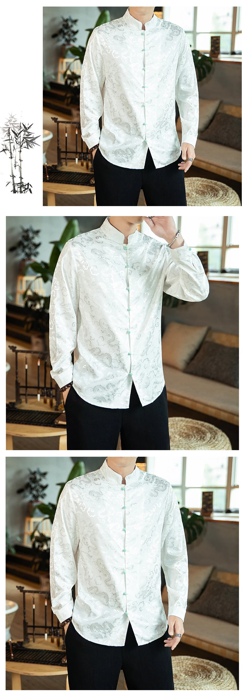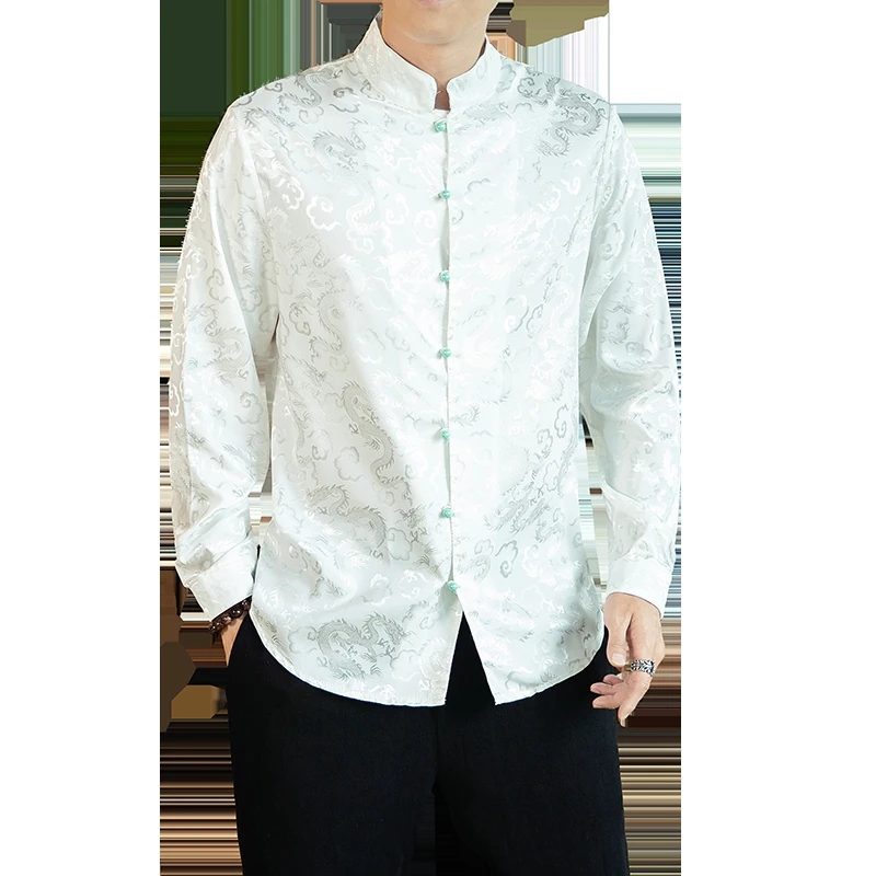 Традиционная китайская одежда для мужчин, осенняя уличная шелковая рубашка с длинным рукавом, традиционная китайская рубашка M-5XL размера XXXXXL, одежда с драконом