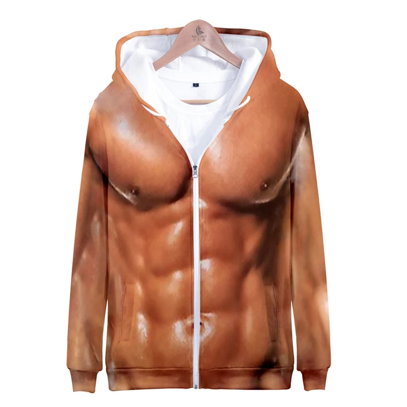 Мужская фальшивые мускулы с 3D принтом, бейсбольная куртка на молни...