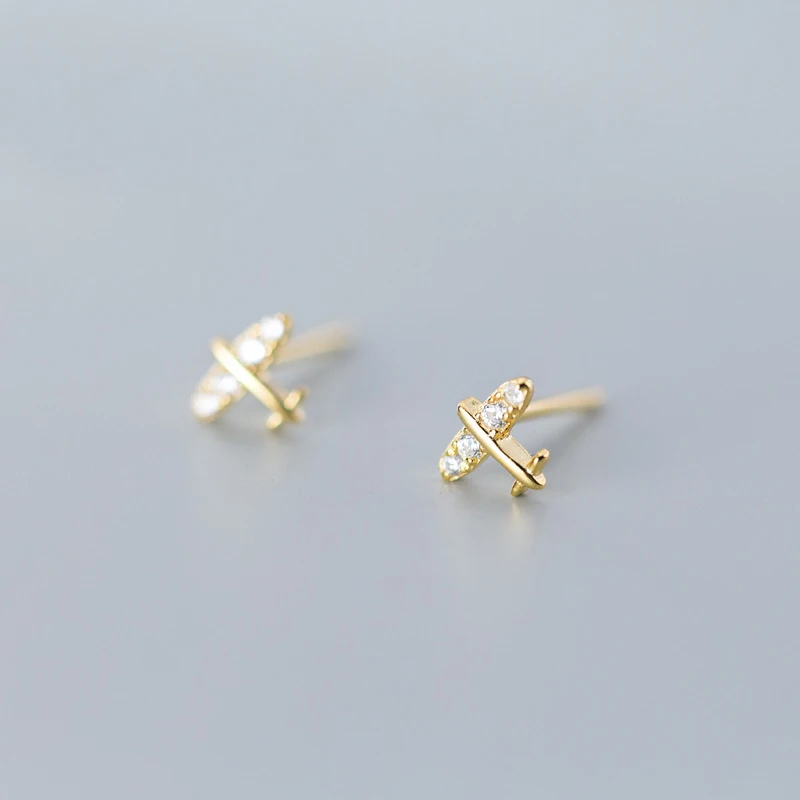 Женские сверкающие серьги-гвоздики MloveAcc, из стерлингового серебра 925 пробы в виде самолета и самолета с фианитами, Серебряное ювелирное изделие 925 пробы, подарок на свадьбу
