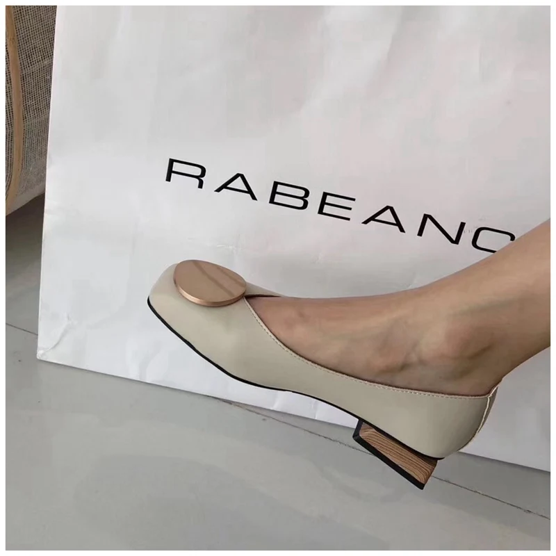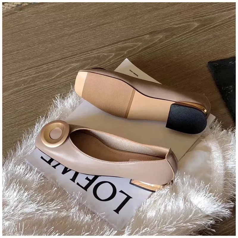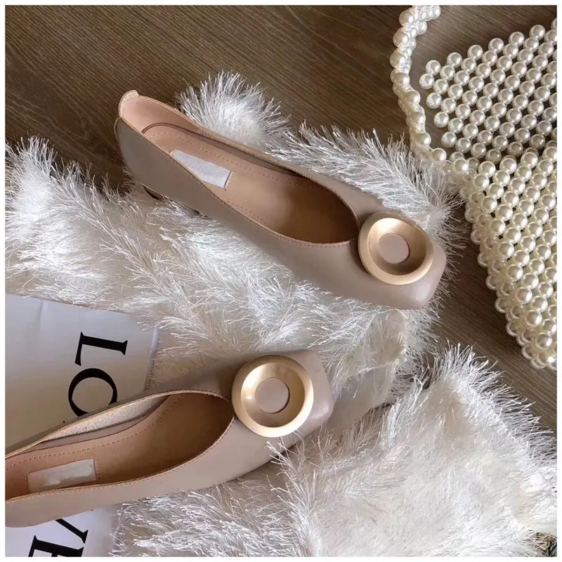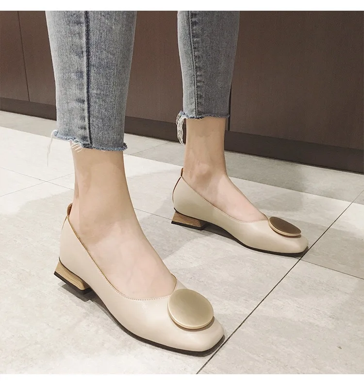 SUOJIALUN2019 новые Брендовые женские туфли на низком каблуке с круглым носком балетки на низком деревянном каблуке с квадратным носком Лоферы без застежки