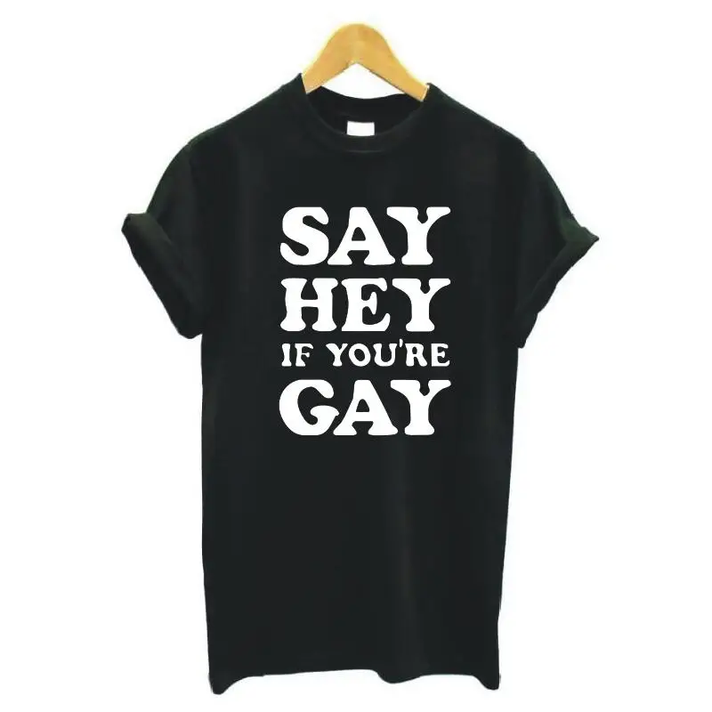 Футболка с надписью Say Hey If You Are геев, женские топы, забавная футболка для лесбиянок, женская рубашка, хипстерская женская футболка с коротким рукавом