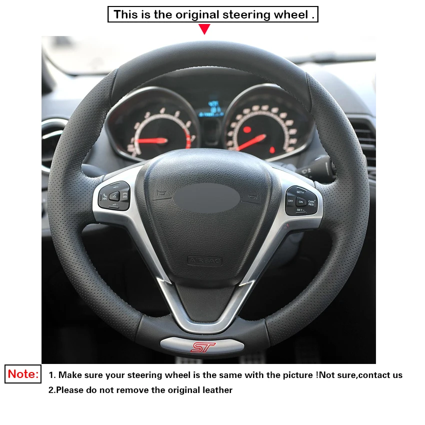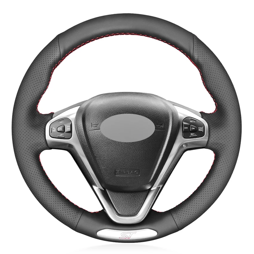 Черная искусственная кожа, сделай сам, сшитая вручную чехол рулевого колеса автомобиля для Ford Fiesta ST 2013, 2014, 2015, 2016, 2017, 2018
