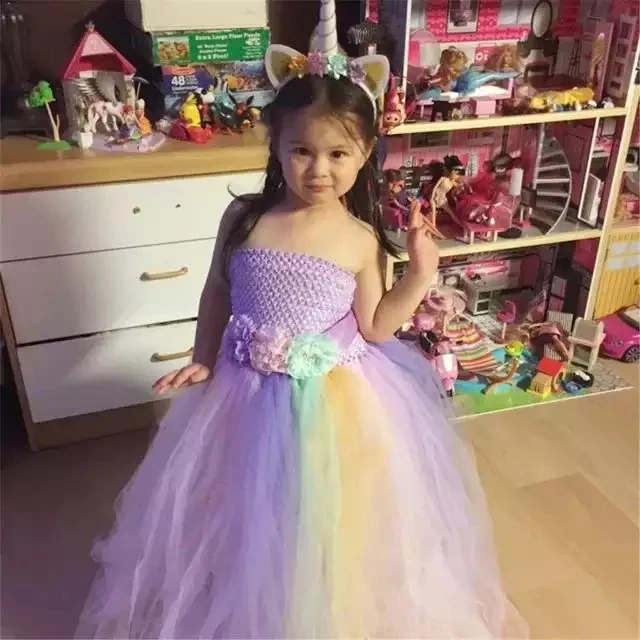 Новое длинное платье-пачка с цветочным рисунком радужного цвета для девочек балетная пачка ручной работы, детское Пышное фатиновое платье Детские Рождественские пачки