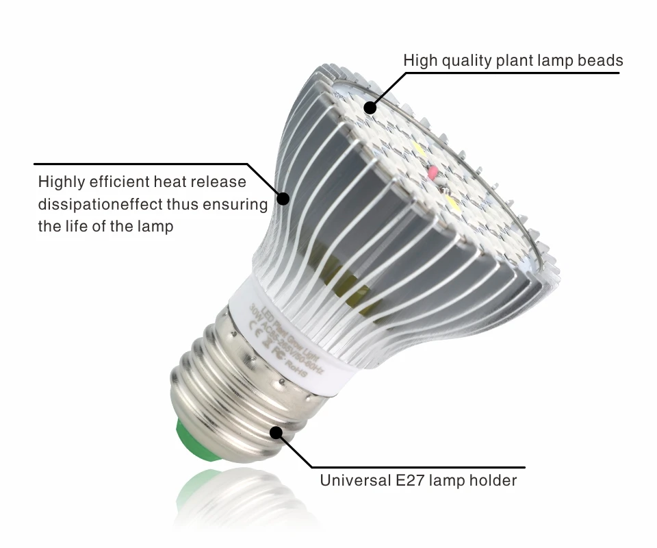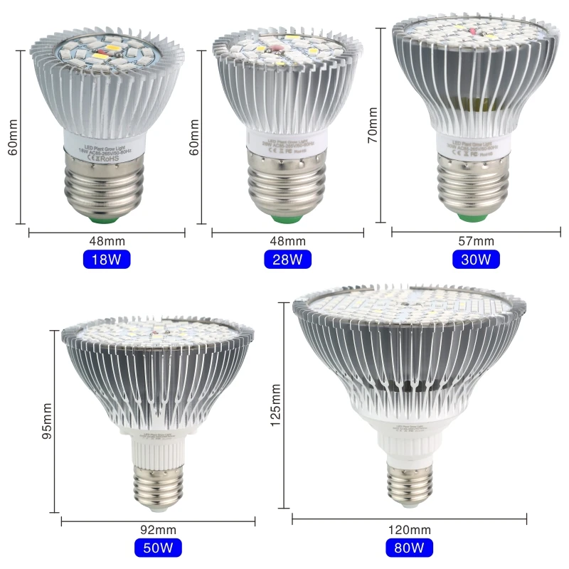 Светильник лампа для выращивания растений, E27, 18 Вт, 28 Вт, 30 Вт, 50 Вт, 80 Вт, светильник в, AC85-265V в, 110 В