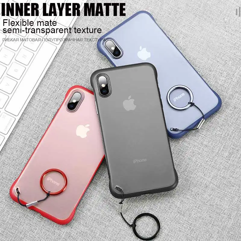 Матовый чехол без рамки 4 цветов для iPhone X XR XS 11 12 13 mini Pro Max 6 6s 7 8 Plus SE 2020 жесткий чехол для телефона из поликарбоната с кольцом на палец