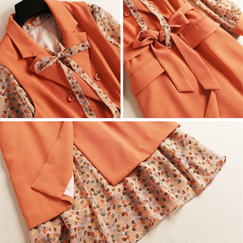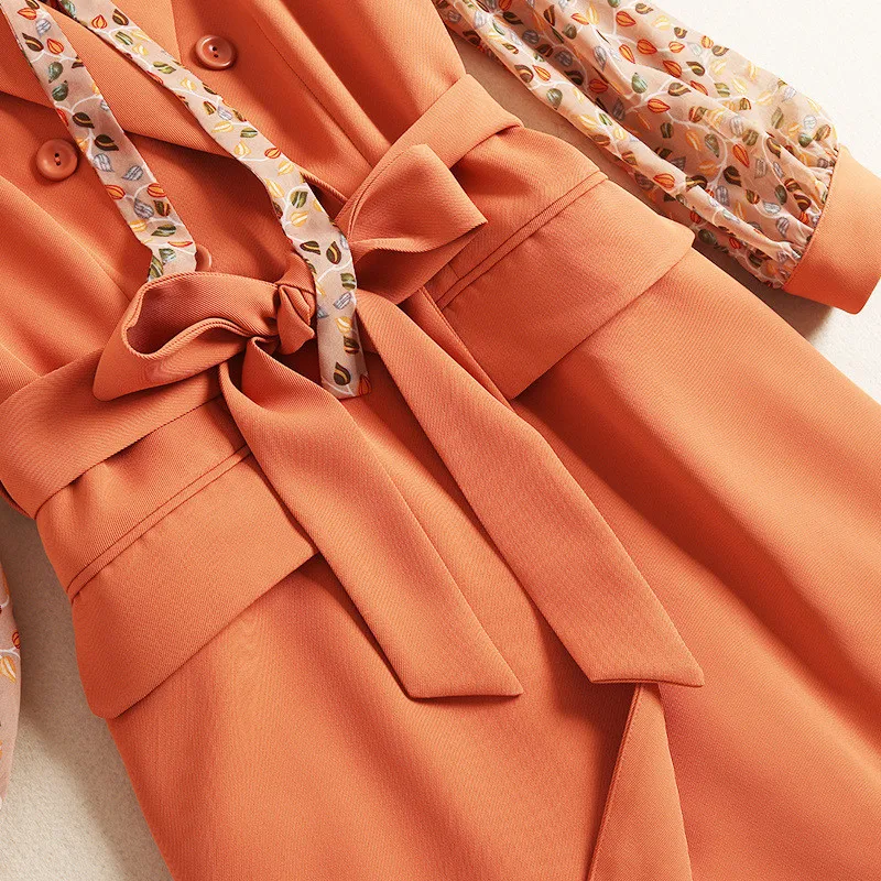 Женское элегантное платье с длинным рукавом, дизайнерское шифоновое платье с принтом и разрезом, комплект из 2 предметов, осень 2019