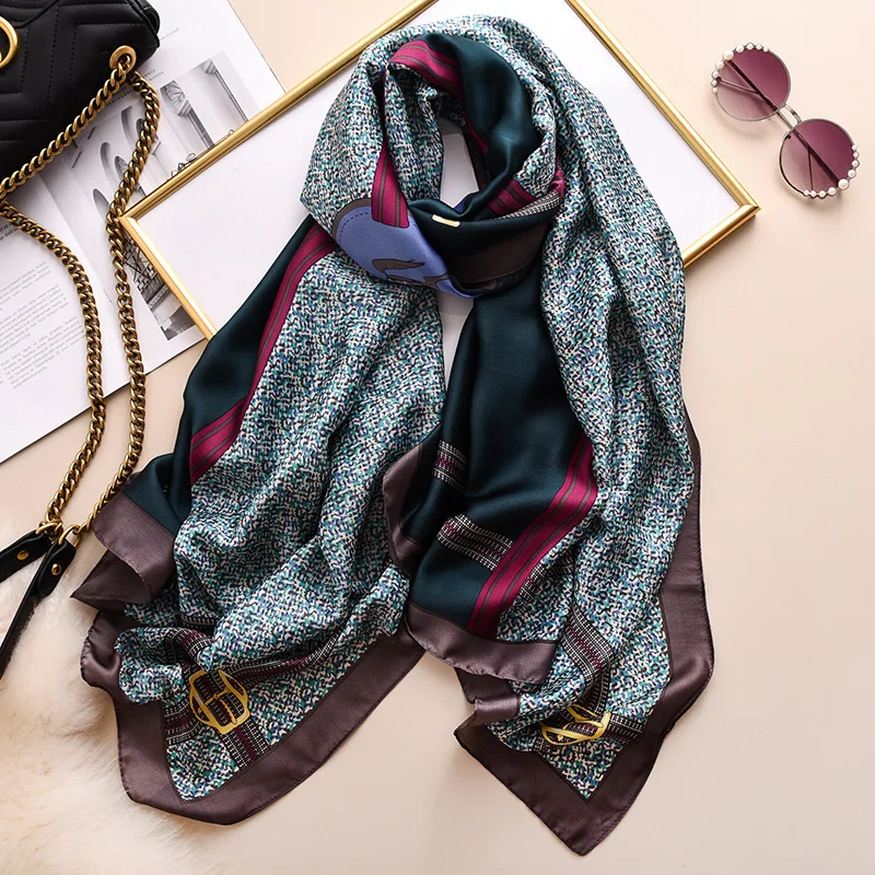 Роскошный брендовый женский шарф 180*90 см, летние шелковые шарфы, шали, женские шарфы, мягкая женская дизайнерская фуляровая бандана