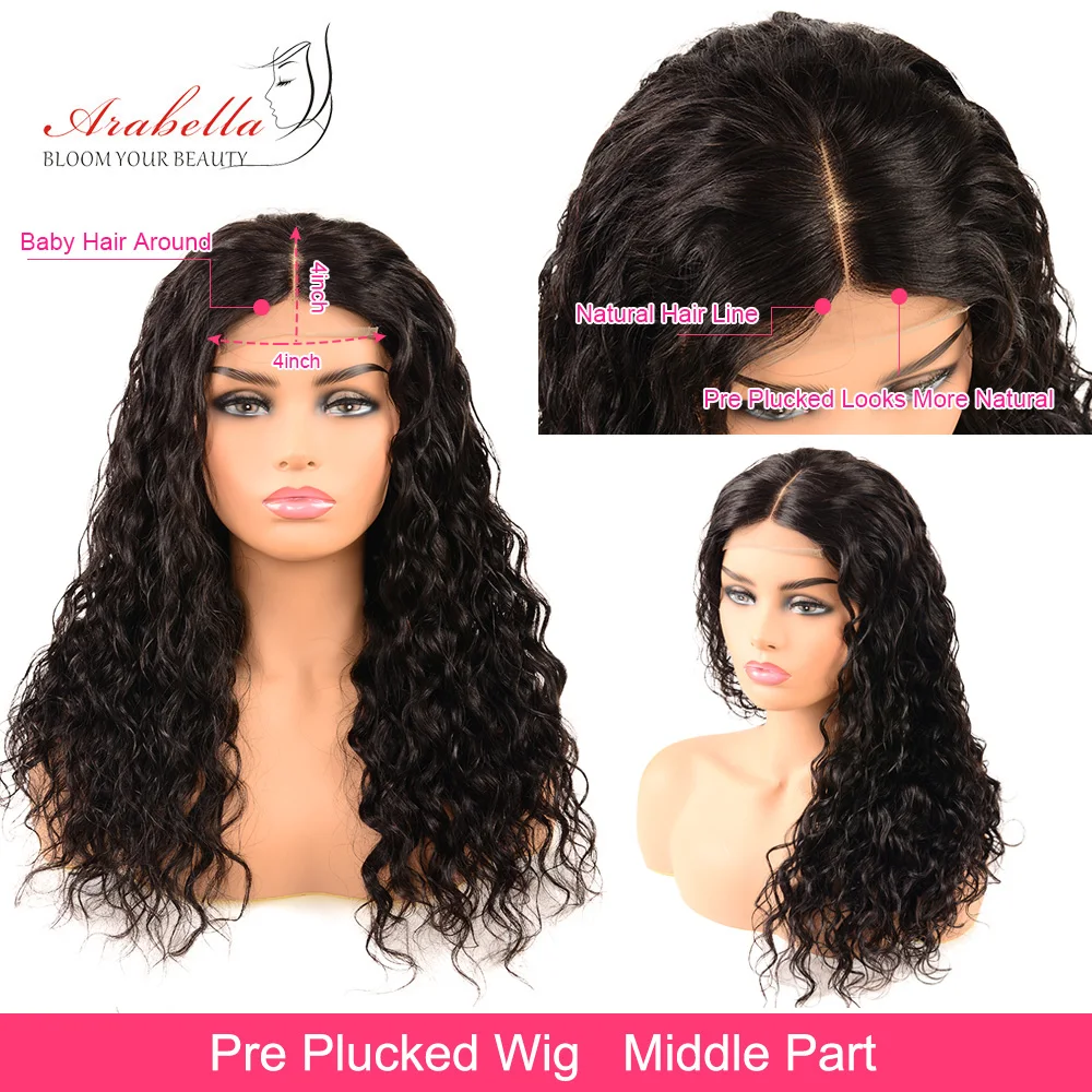 Парик Water Wave 4x4, парик на сетке, 100% натуральные волосы, 13x4, парик на сетке спереди Arabella Water Wave, прозрачная сетка спереди, T часть парика