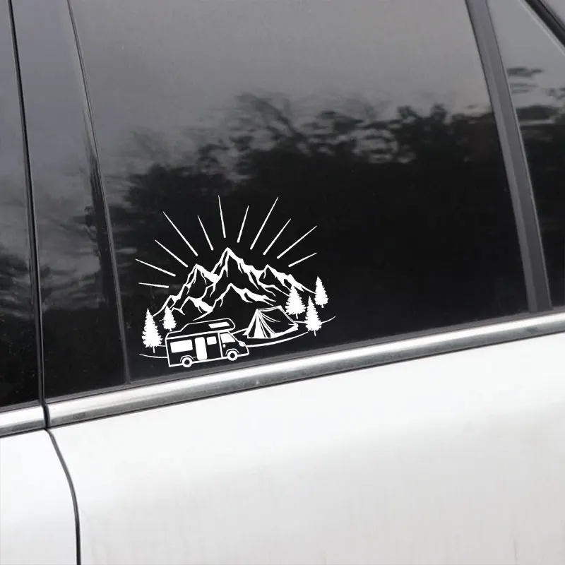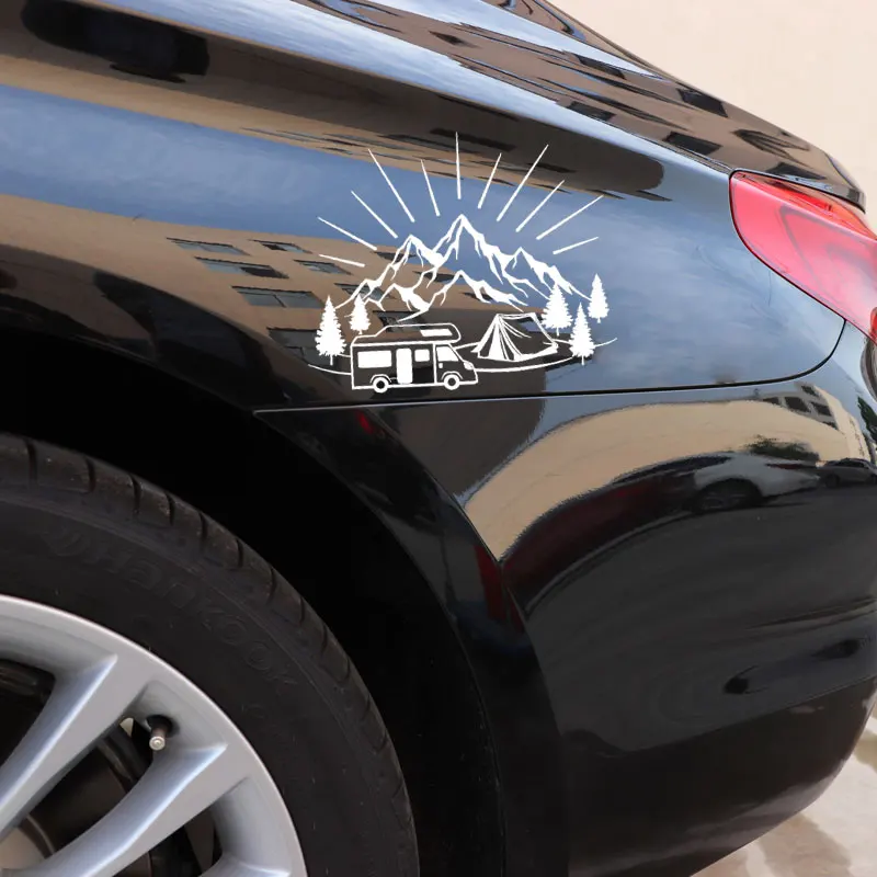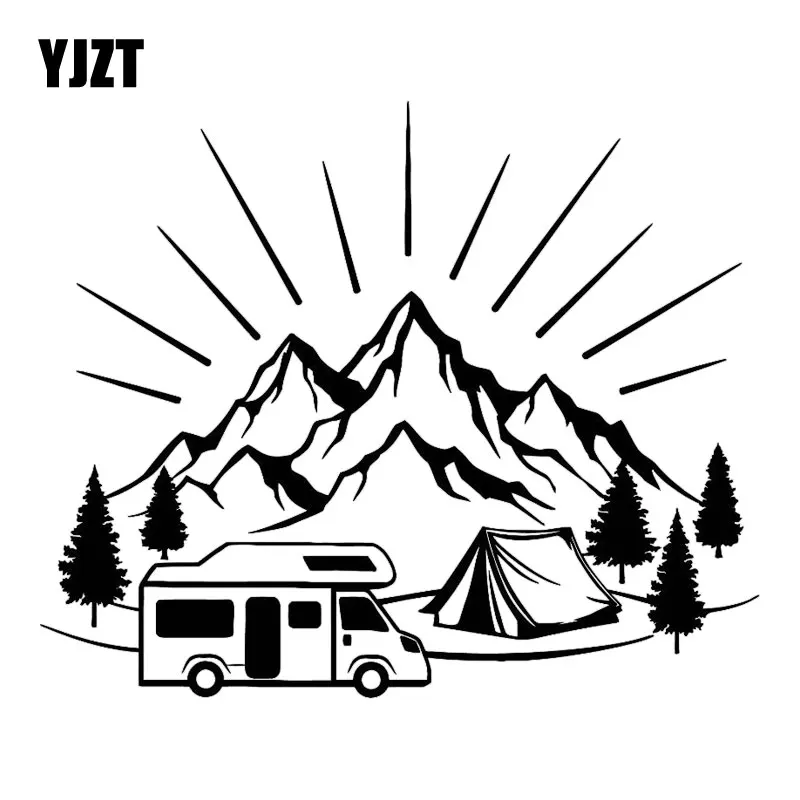YJZT 18,3 см * 14,8 см палатка для кемпинга путешествия горы пейзаж модные Стикеры для стайлинга Автомобиля Виниловые наклейки черныйсеребристый C31-0303