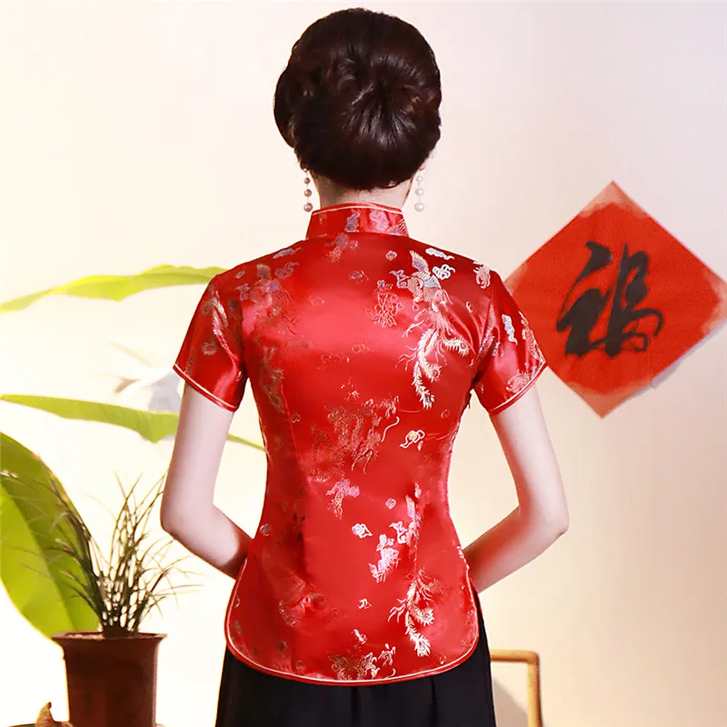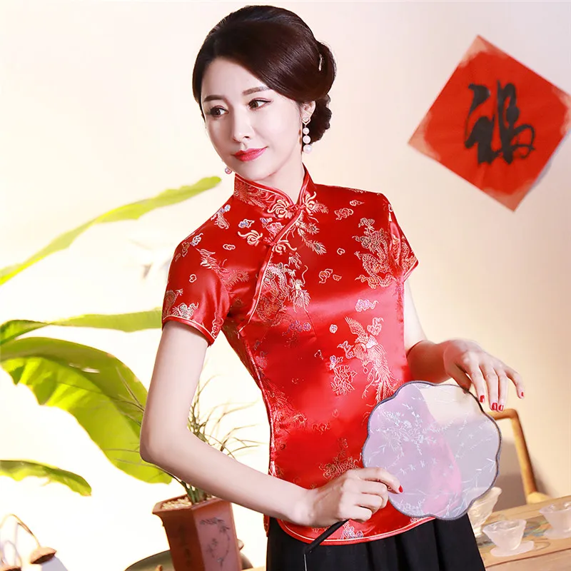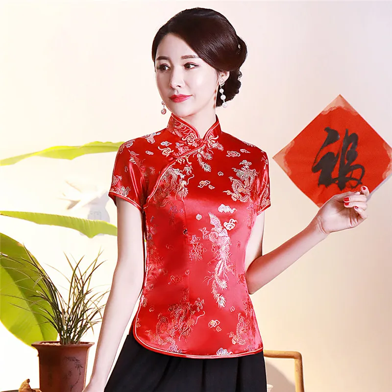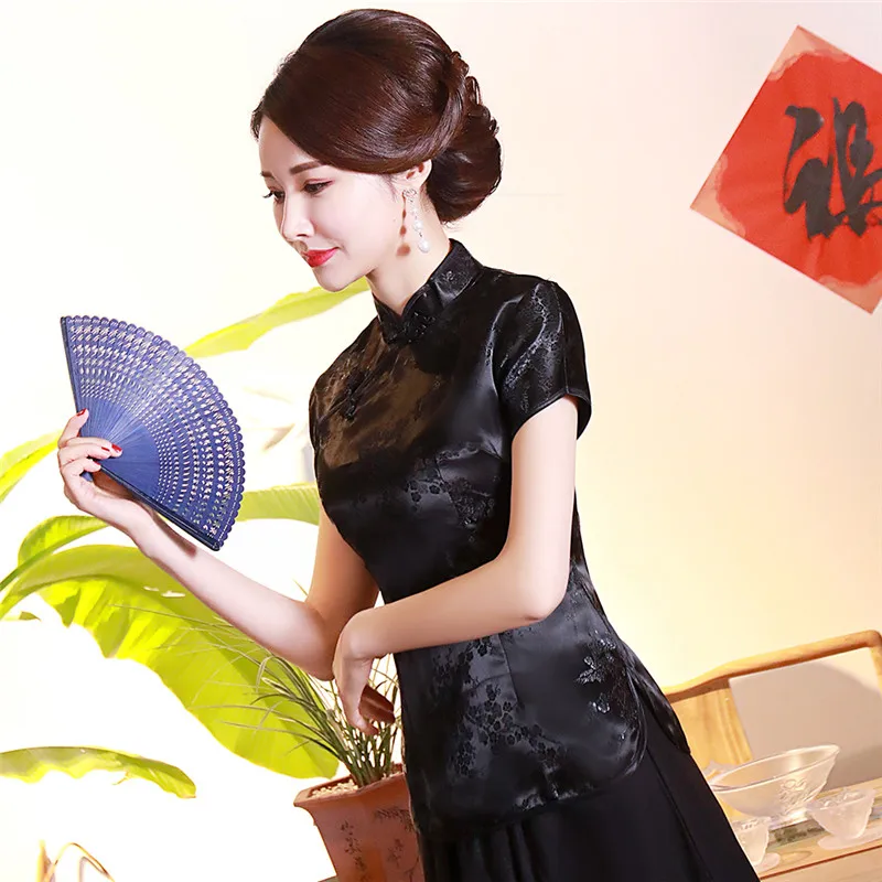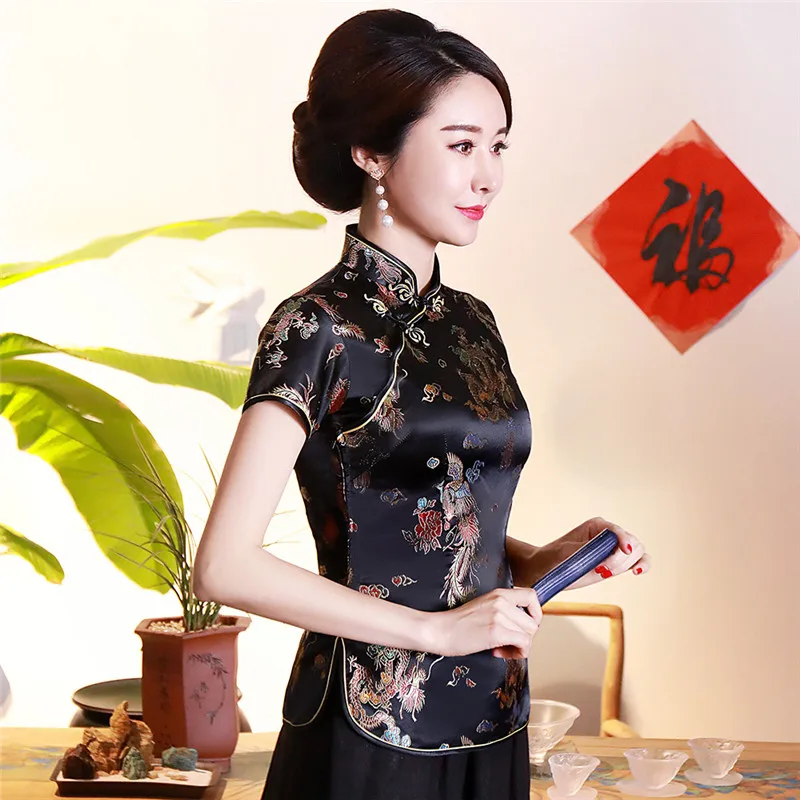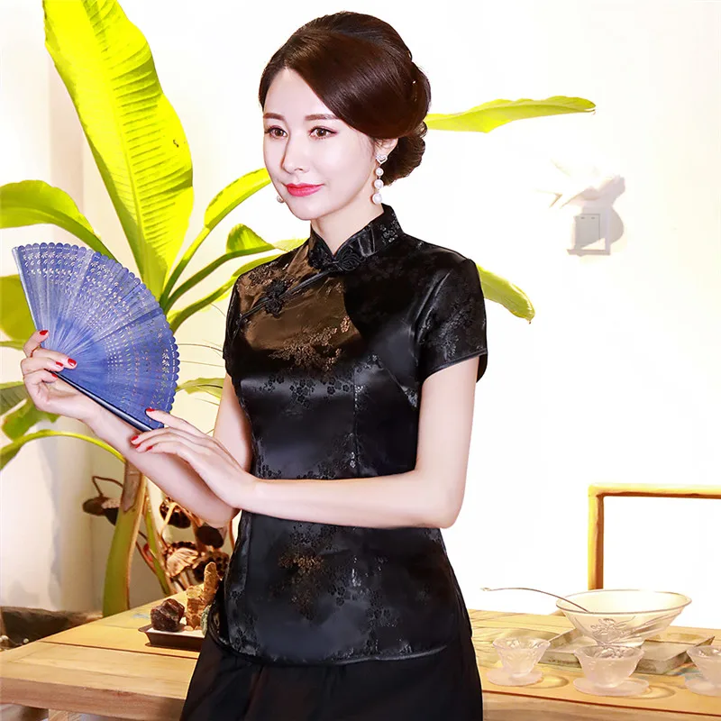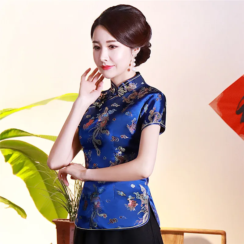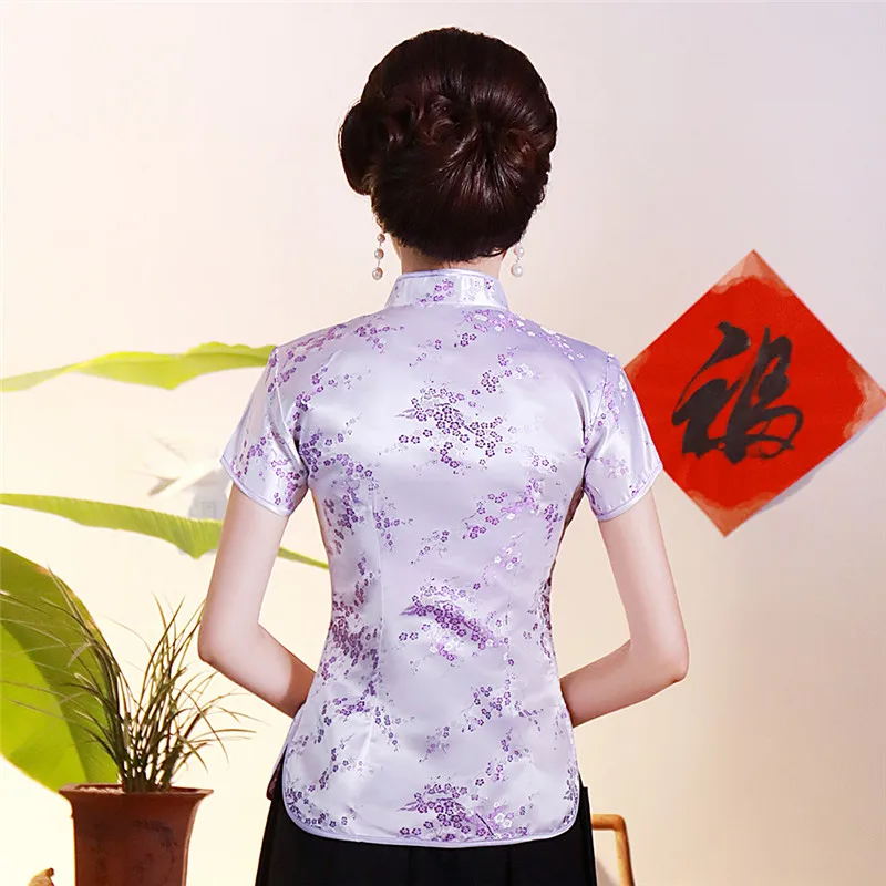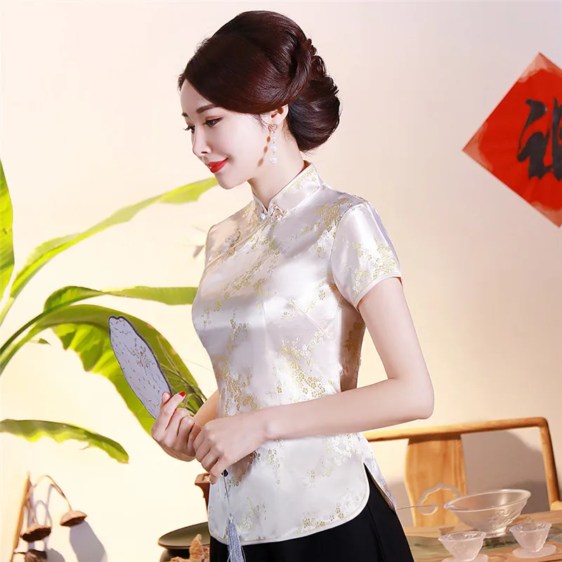 Китайский традиционный женский топ размера плюс 3xl 4xl, атласная блузка с цветами, винтажная рубашка ручной работы на пуговицах, костюм с коротким рукавом