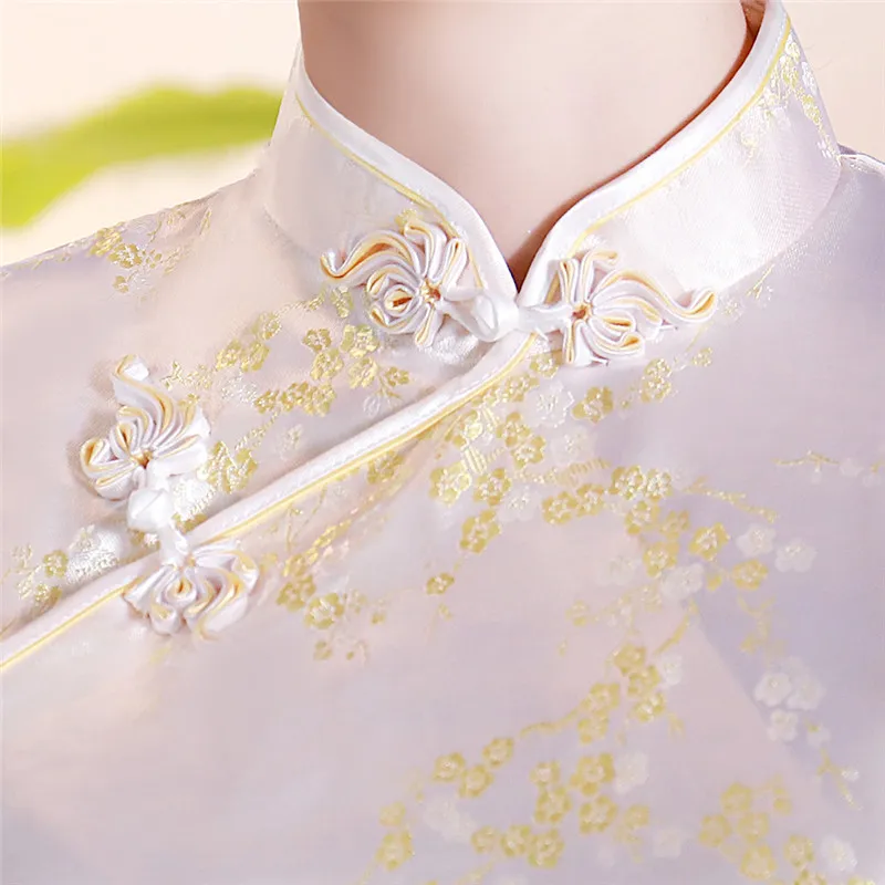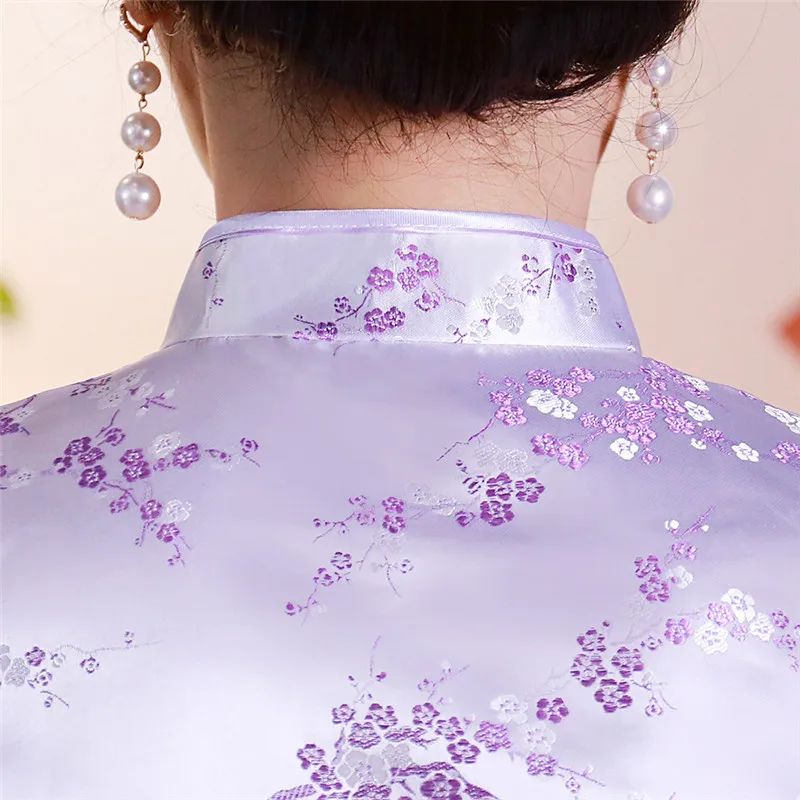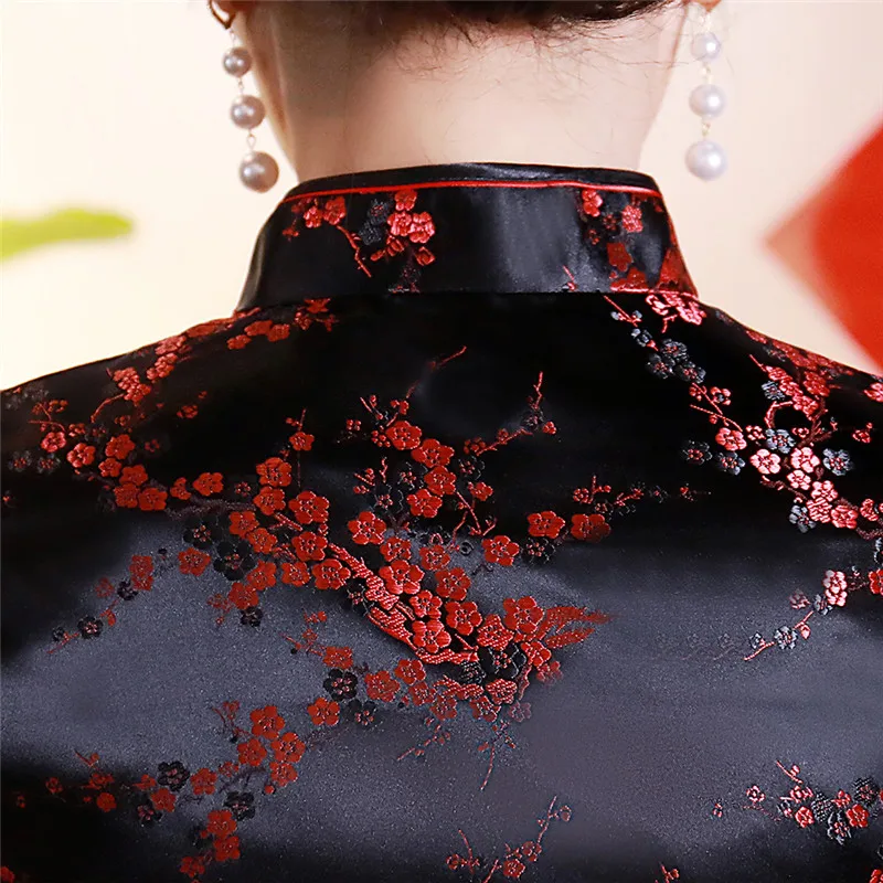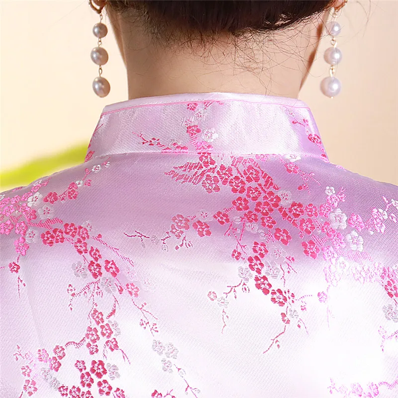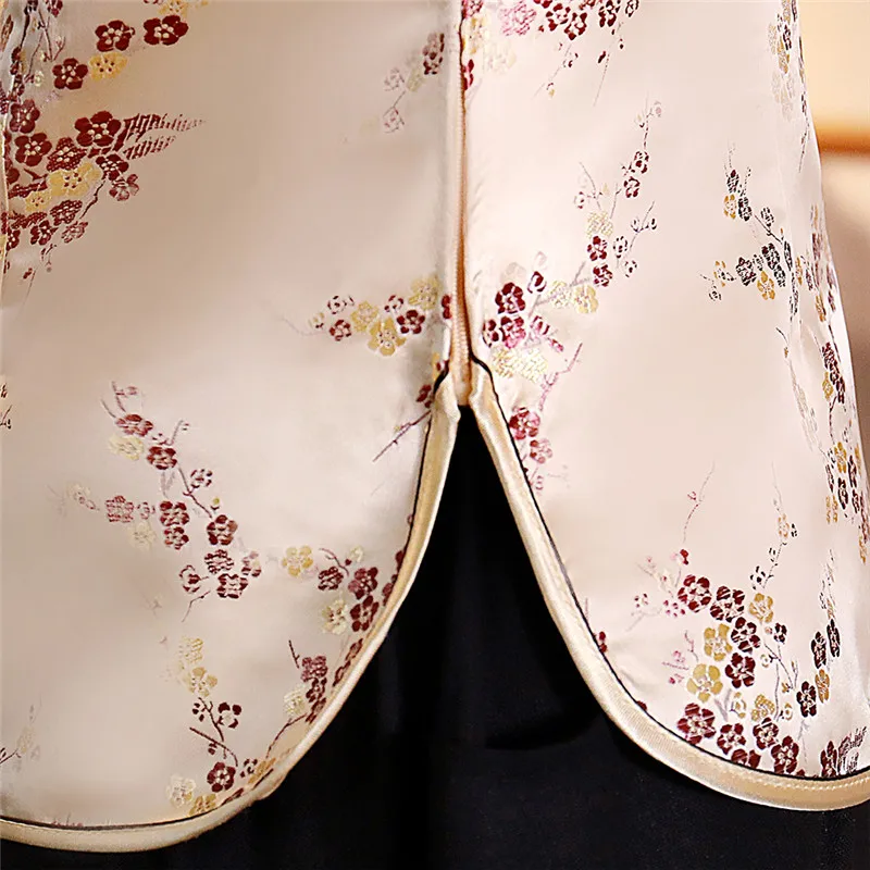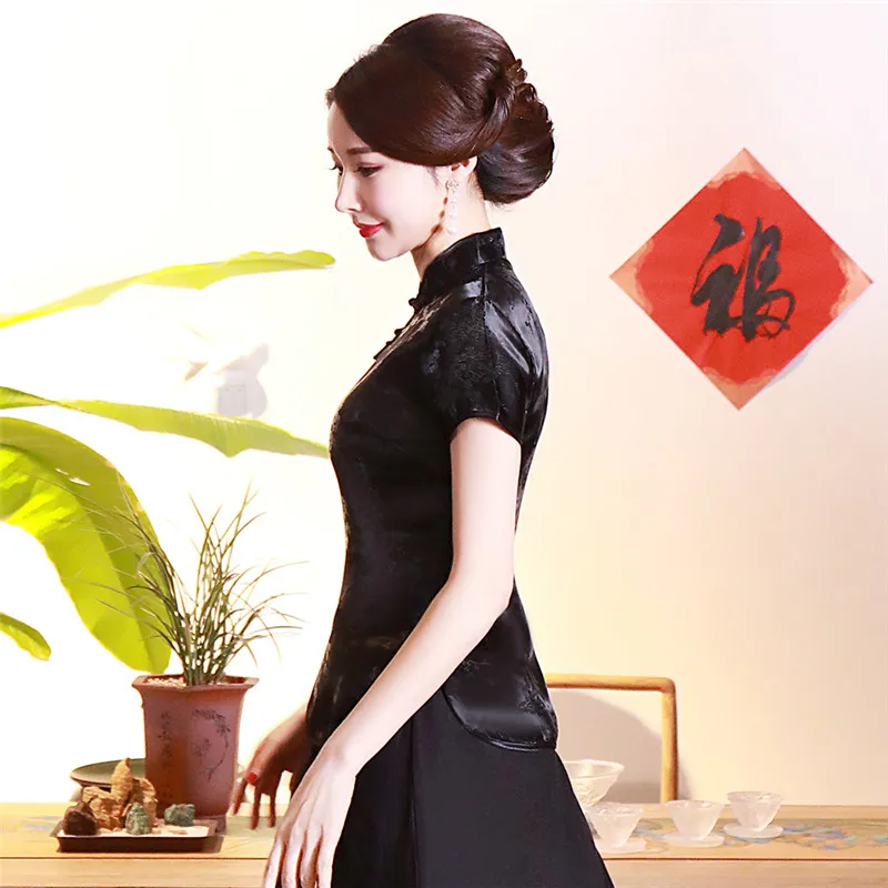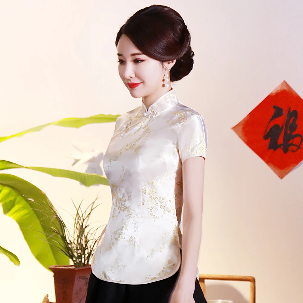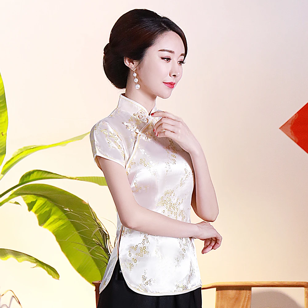 Китайский традиционный женский топ размера плюс 3xl 4xl, атласная блузка с цветами, винтажная рубашка ручной работы на пуговицах, костюм с коротким рукавом