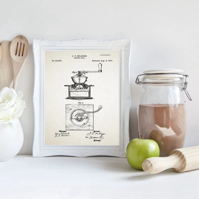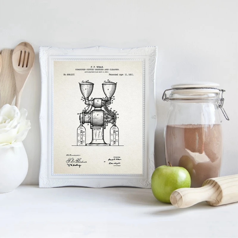 Винтажные постеры и принты кофейного патента, Настенный декор для кухни, ретро Картина на холсте, Подарочная украшения для ресторана