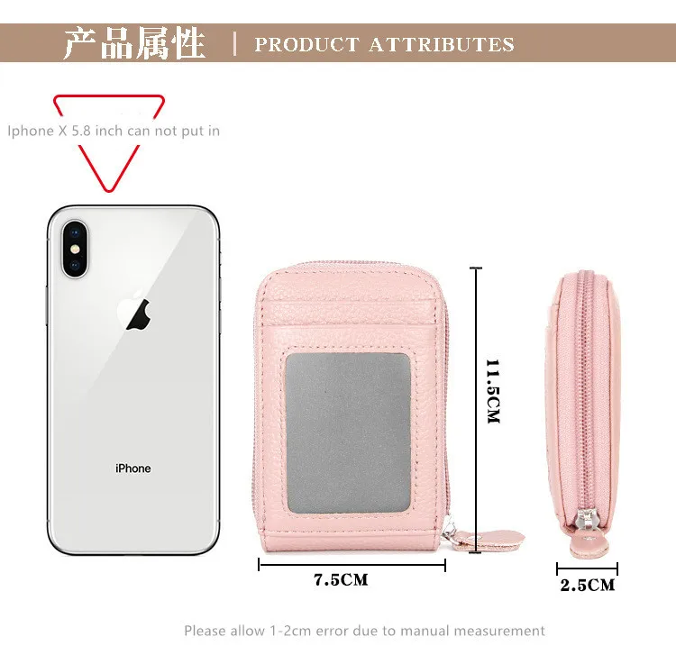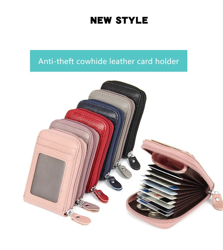 Женский держатель для карт из натуральной кожи с RFID блокировкой, ...