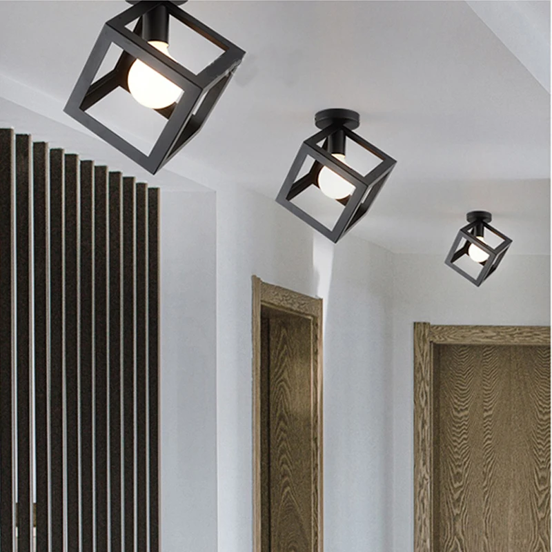 Промышленный потолочный светильник, винтажные черные кованые железные осветительные приборы для коридора, коридора, кухни, балкона, крыльца, отеля, Ретро лампа
