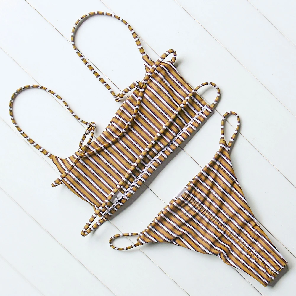 Бикини OMKAGI в полоску, женский сексуальный купальник, пуш-ап, купальный костюм, комплект микро бикини, 2019