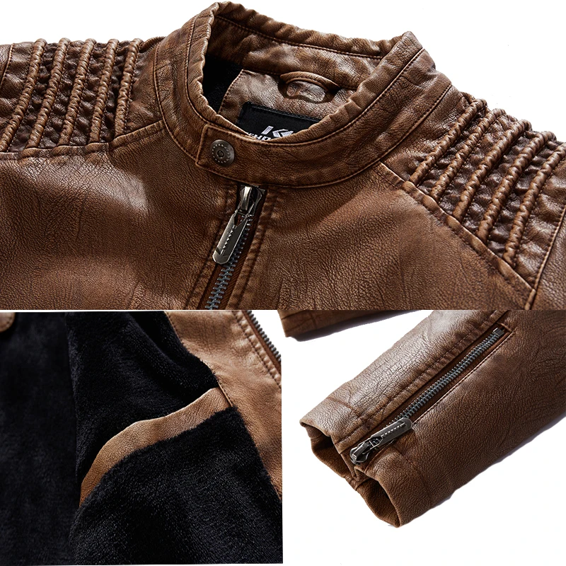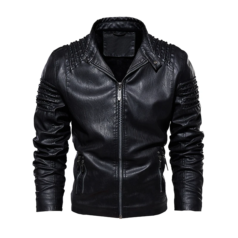 Мужская зимняя кожаная куртка, мотоциклетная байкерская куртка из искусственной кожи, мужская верхняя одежда, модная теплая утепленная куртка с подкладкой из искусственной шерсти, M-5XL