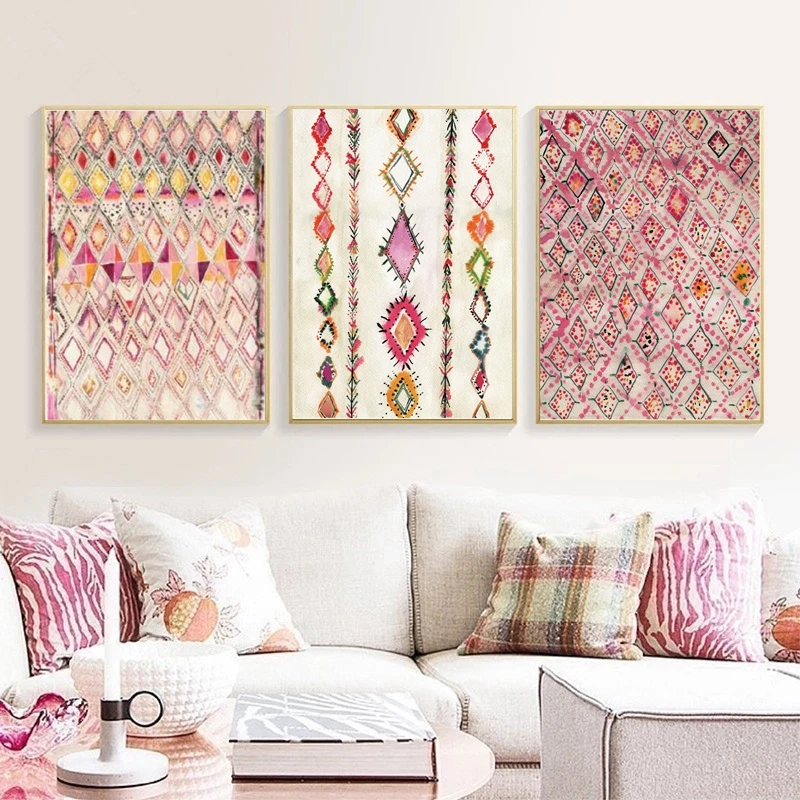 Bohemian Pink Eclectic Art Painting Picture Home Decor