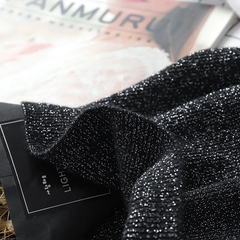 Женский Блестящий свитер с блестками, базовый пуловер с длинными рукавами, суперэластичный трикотажный джемпер в Корейском стиле на осень