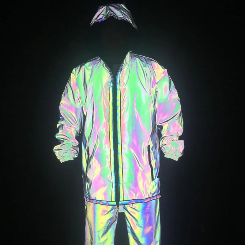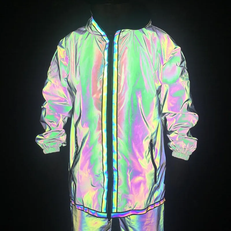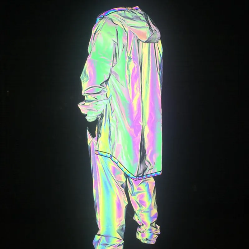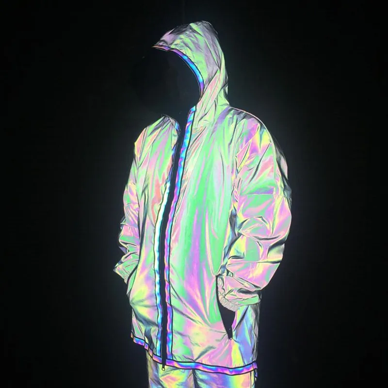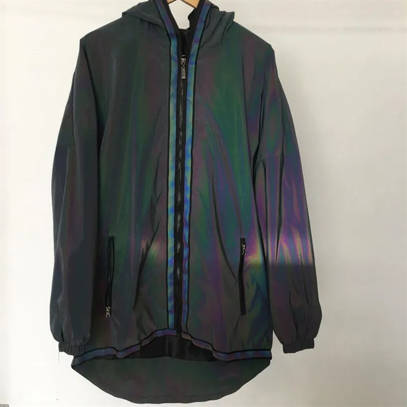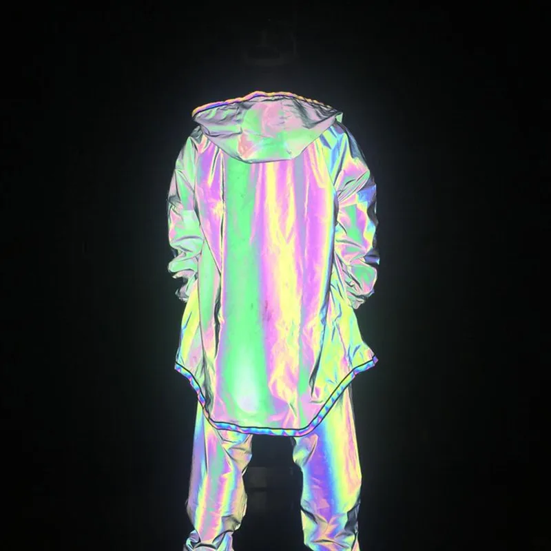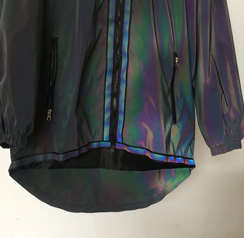 Мужская осенне-ночная яркая Светоотражающая куртка с капюшоном, длинная Прорезная куртка с изогнутым подолом, в стиле хип-хоп, свободная ветровка, водонепроницаемое пальто, 2019