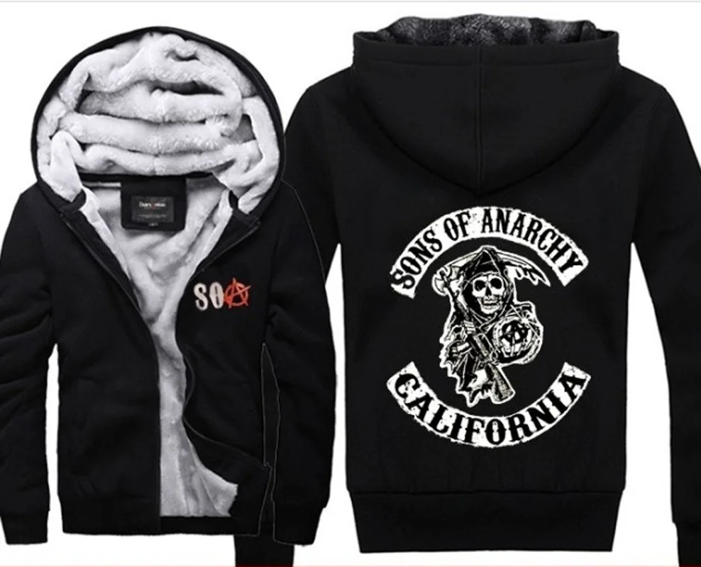 Хлопковые флисовые пальто Sons of Anarchy chaos, свободные зимние мужские толстовки на молнии с принтом, куртка MC, утепленная толстовка