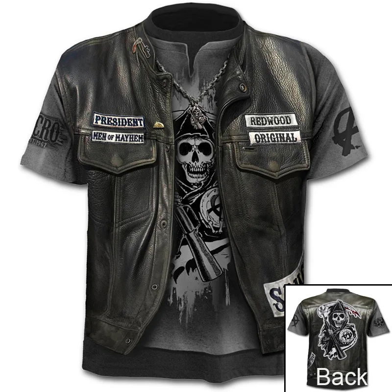 2021 НовинкаСыны АнархииКосплей фальшивый жилет футболка с 3D принт...