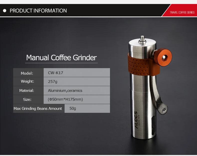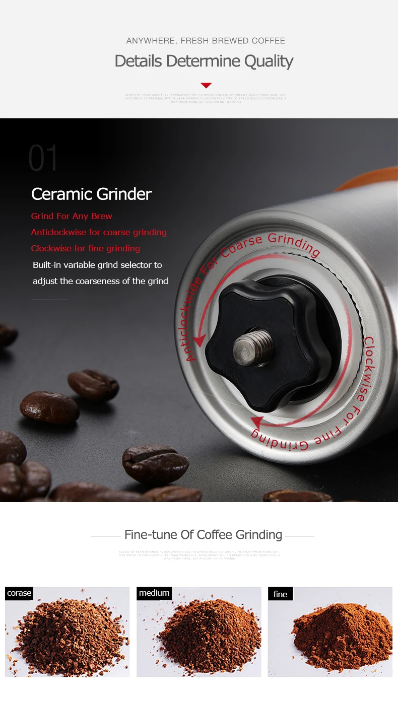 Ручная кофемолка Alocs CW-K17, дорожная коническая Кофемолка с регулируемой настройкой, портативная ручная кофемолка