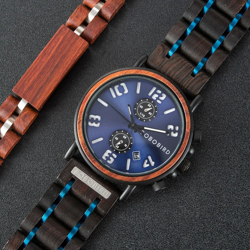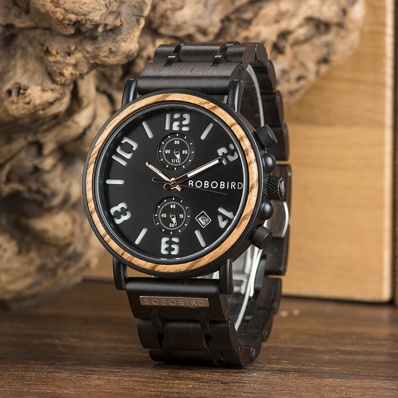 BOBO BIRD relogio masculino, мужские часы с деревянным хронографом, наручные часы, мужские брендовые Роскошные военные часы из нержавеющей стали, подарок