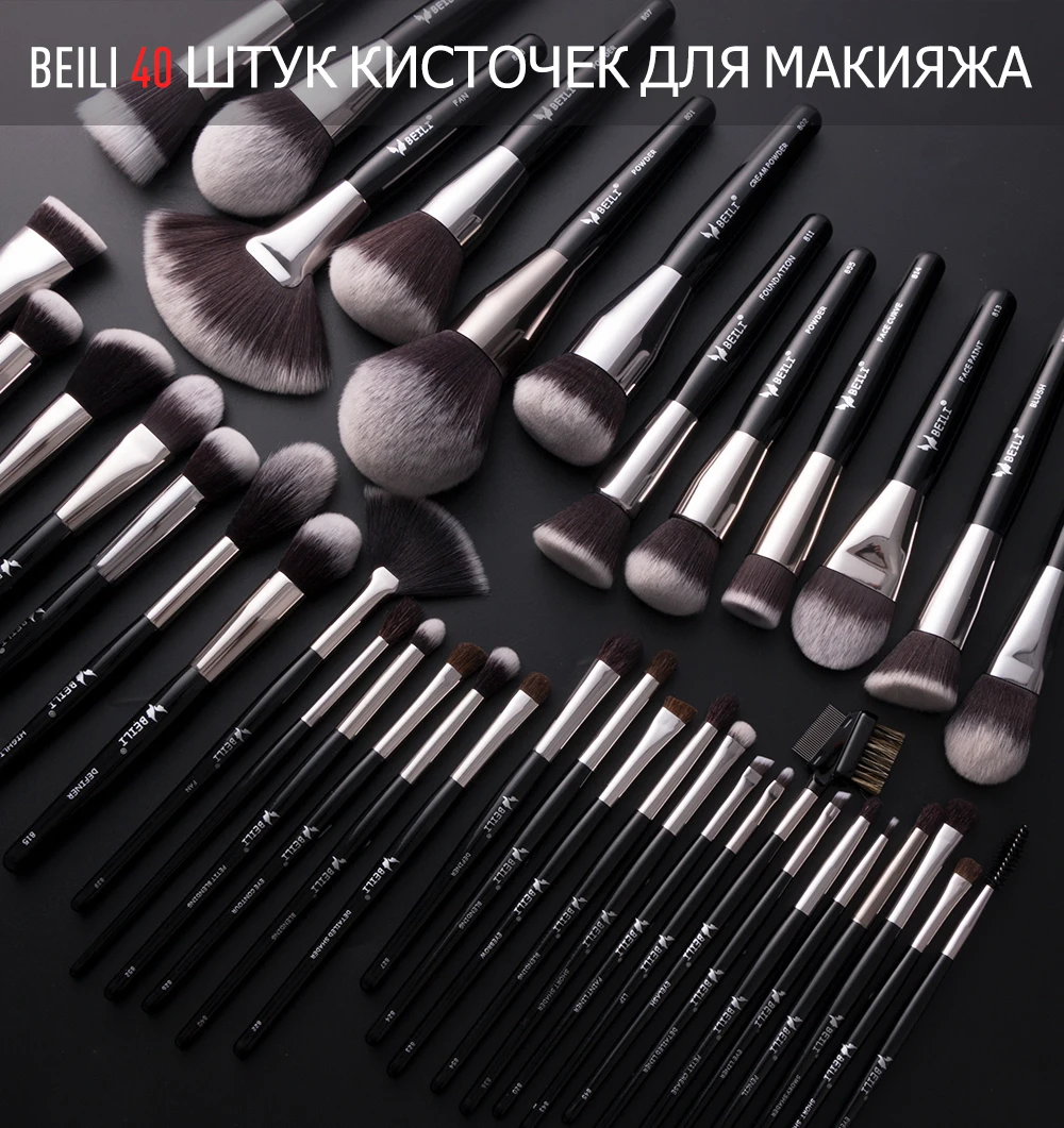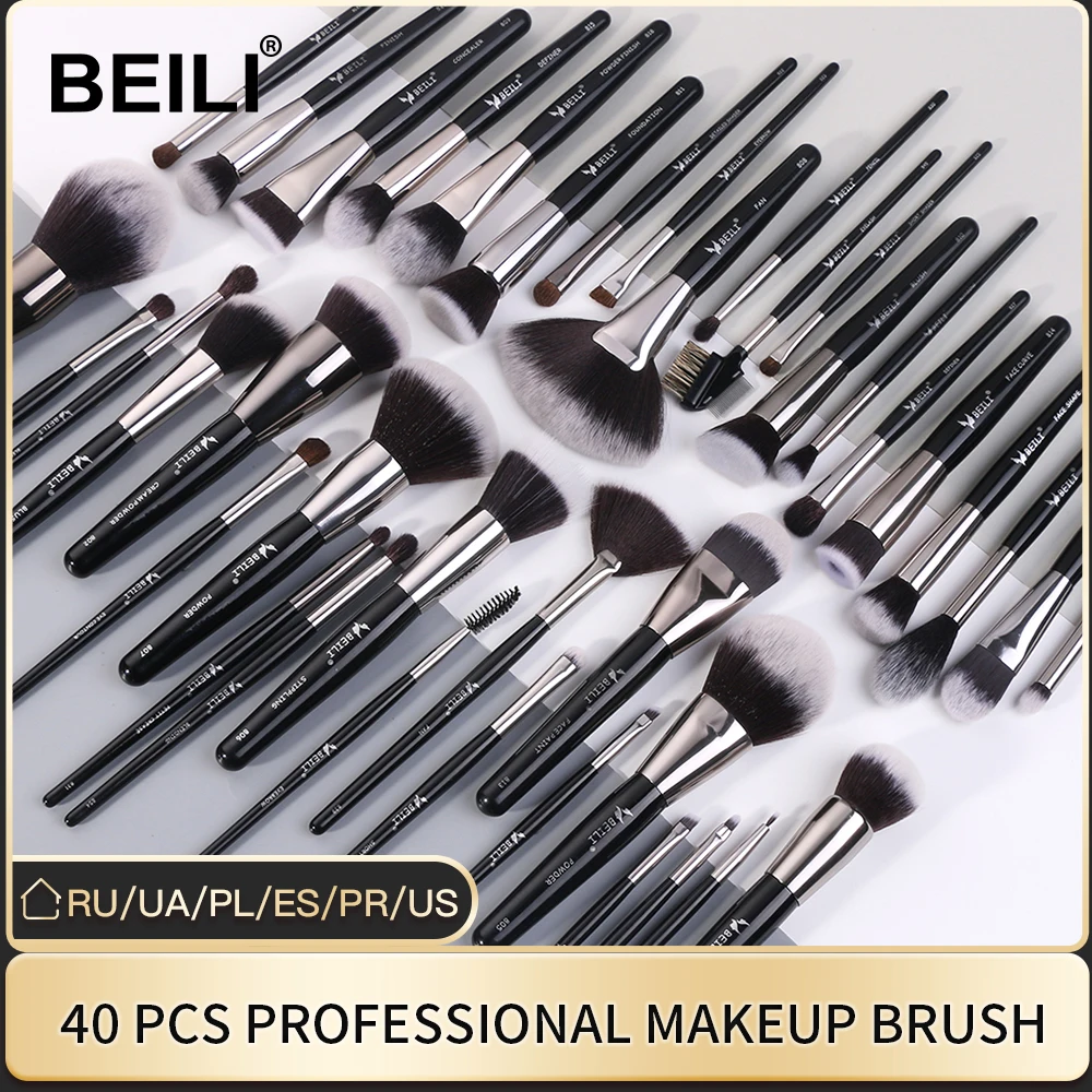Набор кистей для макияжа BEILI, 2-40 шт., натуральный ворс, пудра, тени для век