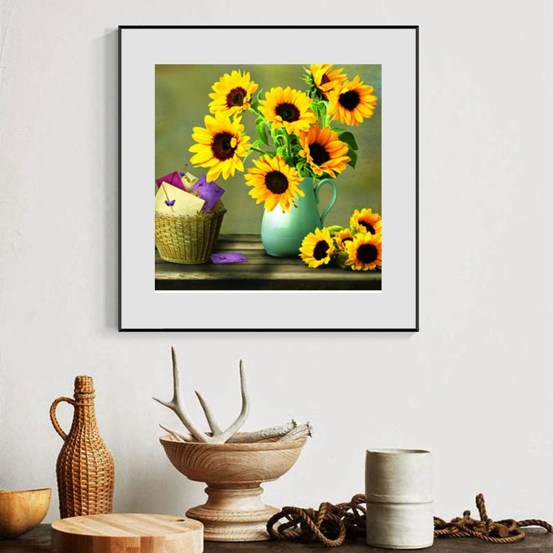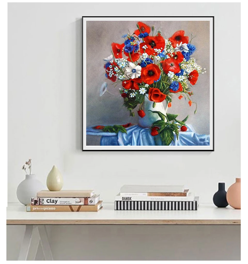 Картина для алмазной вышивки 5D "сделай сам", ваза с цветами, квадр...