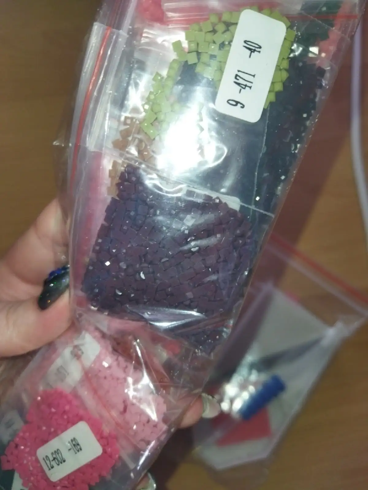 Продавец плохо упаковал стразы. В результате чего сразу просыпались. В процессе выкладывания картины выяснилось, что продавец положил не тот цвет в набор. Цвет под номером 326 не соответствует схеме (в схеме он темно корасный, а стразы синие) Не знаю какой результат будет. Позже дополню отзыв